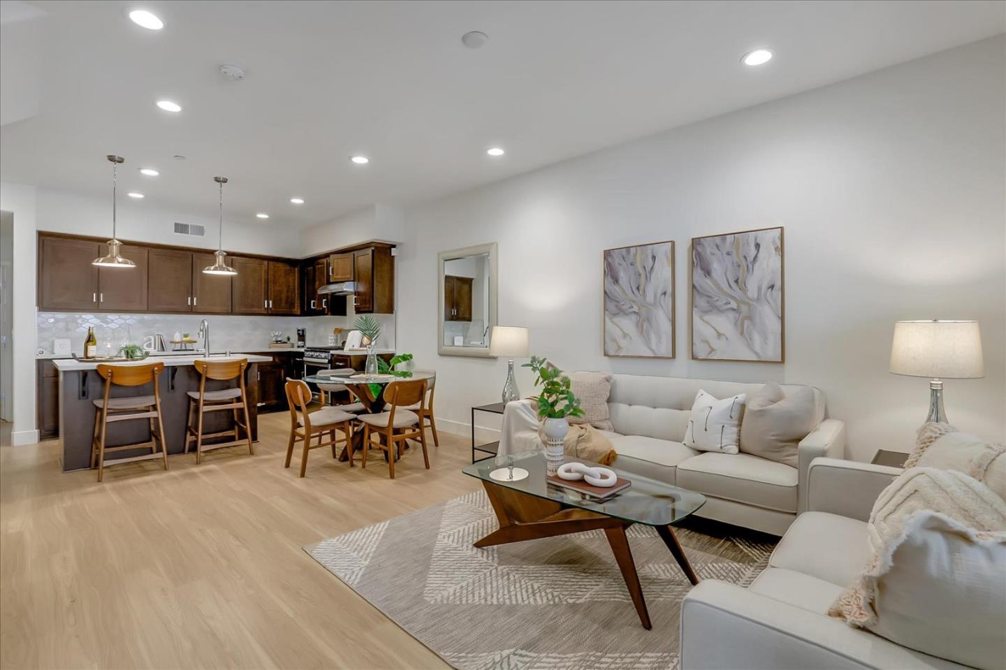 Meticulously maintained townhouse located in the desirable Bayshore community in Newark. With approximately 1,542 sqft, this home features 3BR/3BA plus a loft. Upgraded laminate flooring. Open kitchen with upgraded quartz countertop, full tile backsplash, kitchen island and stainless appliances. Built-in pantry. Spacious balcony off of the living room. Energy efficient home with dual pane windows, tankless water heater, recessed LED lighting, Nest thermostat, Tesla charging station and central HVAC. Two car garage with plenty of storage space. Conveniently located in a master planned community surrounded by water and wildlife preserves (Don Edwards San Francisco National Wildlife Refuge). Minutes to Bart Station, New Park Mall, Facebook, Tesla and many other high tech companies. Short drive to I-880 and Dumbarton Bridge providing an easy commute to San Jose or San Francisco. Parks, kid's playground and a private clubhouse are all within minutes walk. Welcome home!