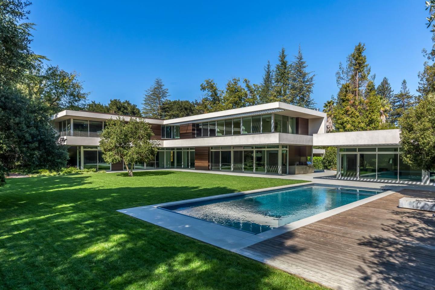Engineering & architectural masterpiece in the heart of Atherton. Built by Lencioni Construction with architecture by Swatt Miers. A world-class destination for luxurious living as well as corporate and/or professional events with pool-side guest house. Sleek interiors with entire walls of glass, heated floors in polished concrete and white oak without baseboards, exotic cabinetry, & hidden hinges on interior doors. 3 levels with solar-powered electricity. Stunning open kitchen and family room, flex room for studying or hobbies, executive office, plus tremendous recreation/media room, and large fitness center with steam room & sauna. 6 bedrooms include 5 upstairs and 1 on lower level + guest house with 1 bedroom, 1 bath & full kitchen. Over 11,000 total square feet. Pool & spa, fire pit, barbecue center, heated terraces, sport court, playground. Detached 3-car garage with EV charging. Midway between San Francisco & Silicon Valley. Excellent Menlo Park schools.