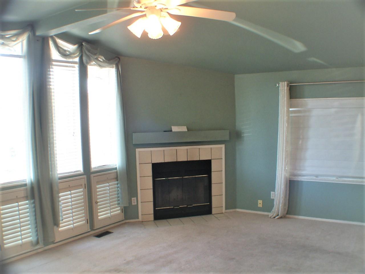 GREAT SPOT IN TOP PARK, VERY LIGHT & BRIGHT. NICE FRONT PORCH, SKYLIGHT CEILING FAN DUAL PANE WINDOWS, SHEETROCK WALLS ,VAULTED CEILING, SEPARATE LAUNDRY ROOM, GOOD SPOT IN BACK OF PARK , WOOD BURNING FIREPLACE, FRONT OF HOME IS WALL OF WINDOWS WITH CUSTOM BLINDS, LOW SPACE RENT WALK TO PARK & SHOPPING.
