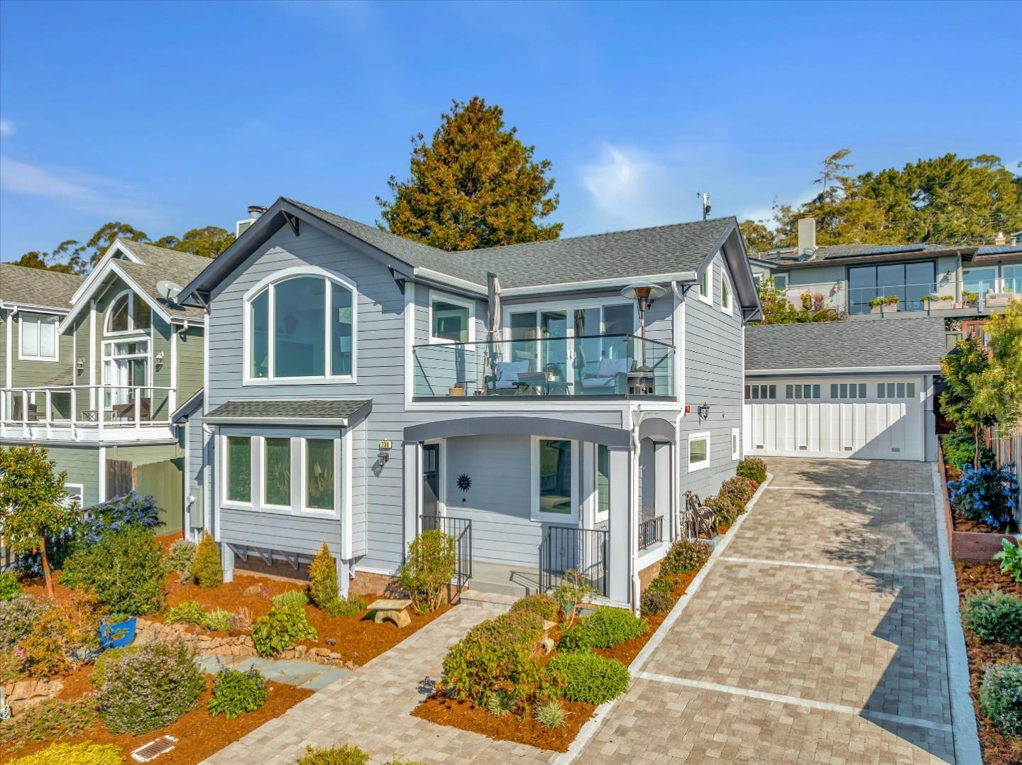 Stunning, newly-built coastal home with mesmerizing, panoramic ocean views that is nestled in a serene cul-de-sac. This 3 bedroom, 3.5 bath home is the epitome of casual, chic living. Bright and airy describe the inverted floorplan that features an open concept that is punctuated with dramatic vaulted ceilings. Hardwood floors throughout with radiant heating, secondary bedrooms are truly en-suites with full baths, and the majestic, ocean-facing deck is perfect for relaxing and soaking up the sun and surf. Kitchen is well appointed with stainless steel appliances, quartz counters, and an over-sized eat-in island. The patio-paver backyard is perfect for entertaining, or additional solitude. Detached, 2-car garage includes electric car charger.