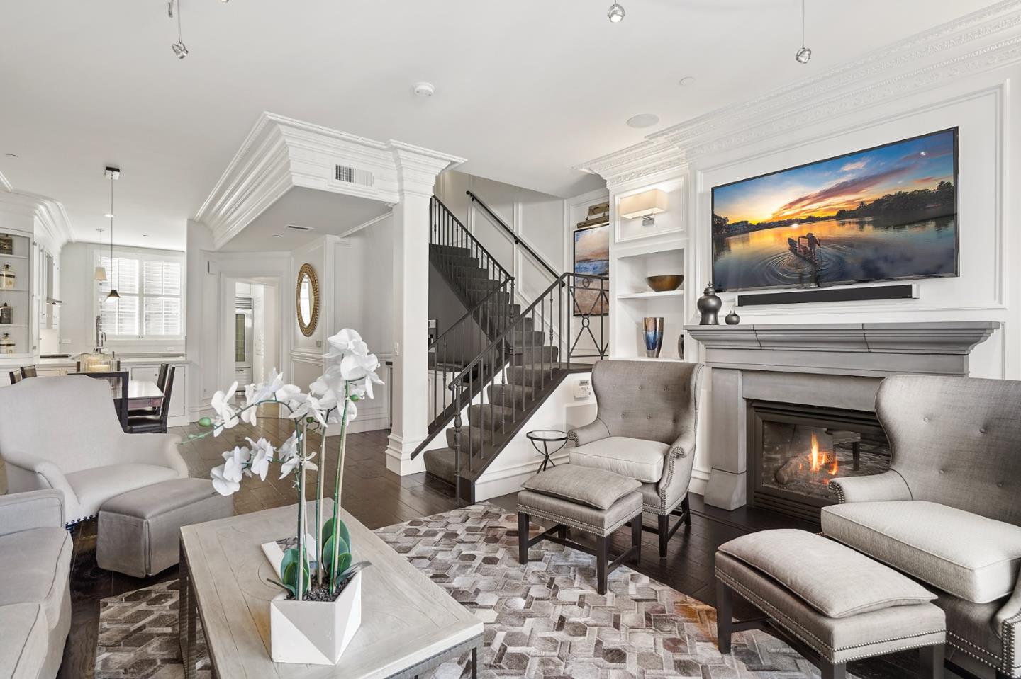 An exceptional opportunity to own a luxury condominium in Santana Rows exclusive Villa Cornet building, located next to premiere shopping & dining. A secured entrance, gated underground parking, 2-car garage +1 parking space & EV charging station. Remodeled to perfection. 2 private outdoor patios, gourmet kitchen, Wolf & Sub-Zero appliances & adjacent dining area with a custom built-in beverage center. Ebony stained wide-plank flooring with sound underlayment & custom built-in cabinetry, high ceilings, black limestone fireplace mantel & floor to ceiling glass windows & doors with custom drapery & wood shutters. Extensive architectural trims, wall paneling, casing & baseboards. Laundry with washer/dryer, 3 bedrooms with en suite bathrooms, large primary suite with en suite bathroom, soaker tub & walk-in closet. All upgraded LED light fixtures throughout. This property offers both the luxury lifestyle of an exclusive residence with proximity & convenience of Santana Rows urban community!