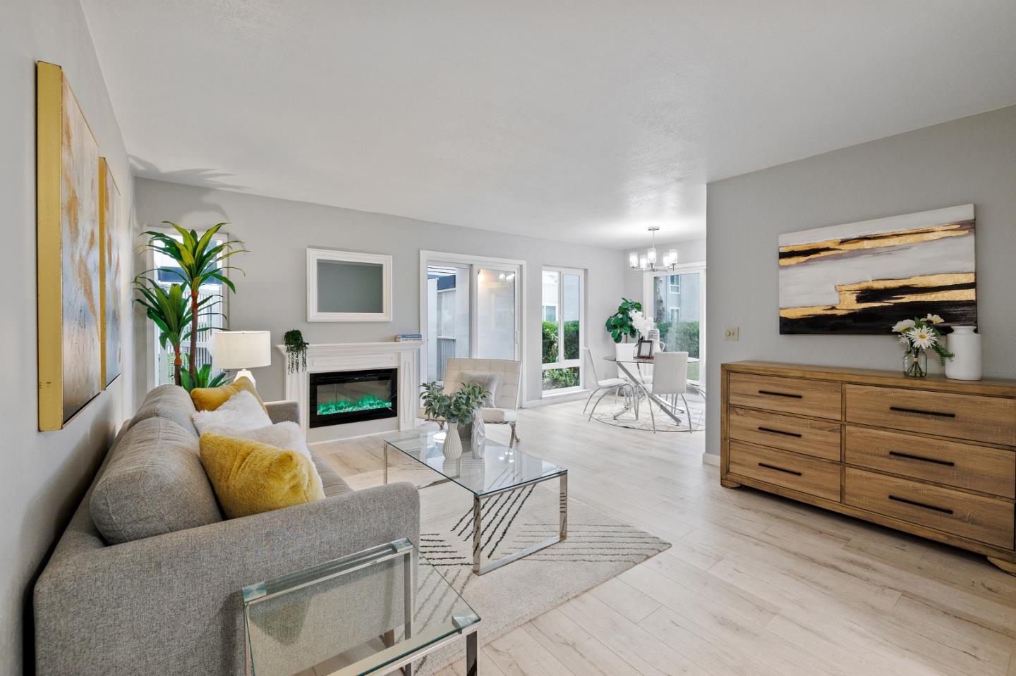 Stunning bright ground floor corner unit overlooking greenbelt. Great quiet location in the complex with convenient access in and out of the home. Spacious patio extends dining/living room to terrific outdoor space. Amazing bright kitchen with eat-in area, large windows and sliding door, looking out to scenic greenbelt. Beautifully remodeled with brand new stainless steel kitchen appliances, elegant laminate floor, and LED ceiling and wall lights. Large living room with new remodeled LED electric fireplace and mantle. Spacious master suite with large walk-in closet & en-suite bathroom in addition to good sized 2nd bedroom. Dual pane windows, extra storage in complex, in unit laundry, deeded parking and ample visitor parking. HOA with elevator, resort-like pool, spa, clubhouse with gym room, BBQ area, charming courtyards. Centrally located with short walk to shopping malls including Ranch 99, parks, award winning Foster City schools, restaurants. Easy access to HWY 101&92.