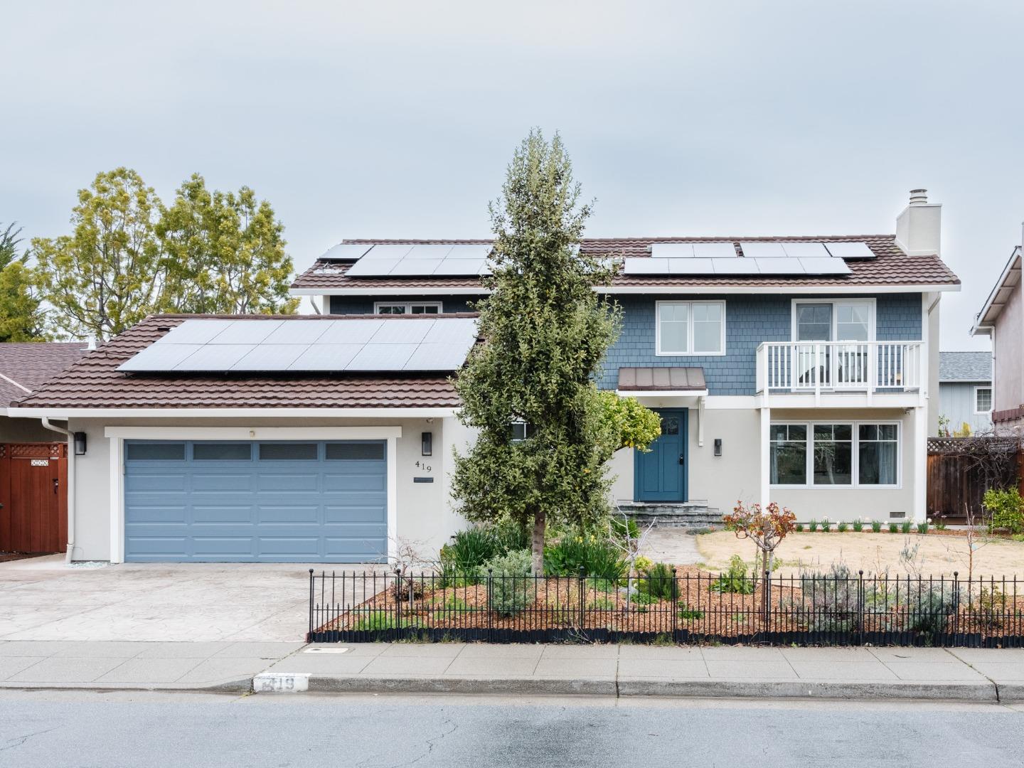 Spacious five bedroom home in an excellent location in Redwood Shores. Living and dining room with spacious windows looking out onto the front and back yards. Kitchen features wood cabinetry, granite countertops, and stainless steel appliances, and breakfast bar. Generous family room is perfect for entertaining and leads out to the back patio. An office with built-ins, full bathroom, and laundry room complete the first floor. Upstairs the Primary Bedroom has generous closet space, sitting area, bathroom with steam shower, and a balcony with a view of the hills. Four additional bedrooms offer lots of possibilities for children's rooms, guest room, or work from home space. The remodeled hall bath features a double vanity and shower/tub. Backyard with patio, flagstone, and raised garden beds. Home also features newer windows, hardwood floors, garage w/ EV charge outlet, and owned solar. Award-winning Belmont/Redwood Shores schools. Conveniently close to parks, shopping, and commute paths.