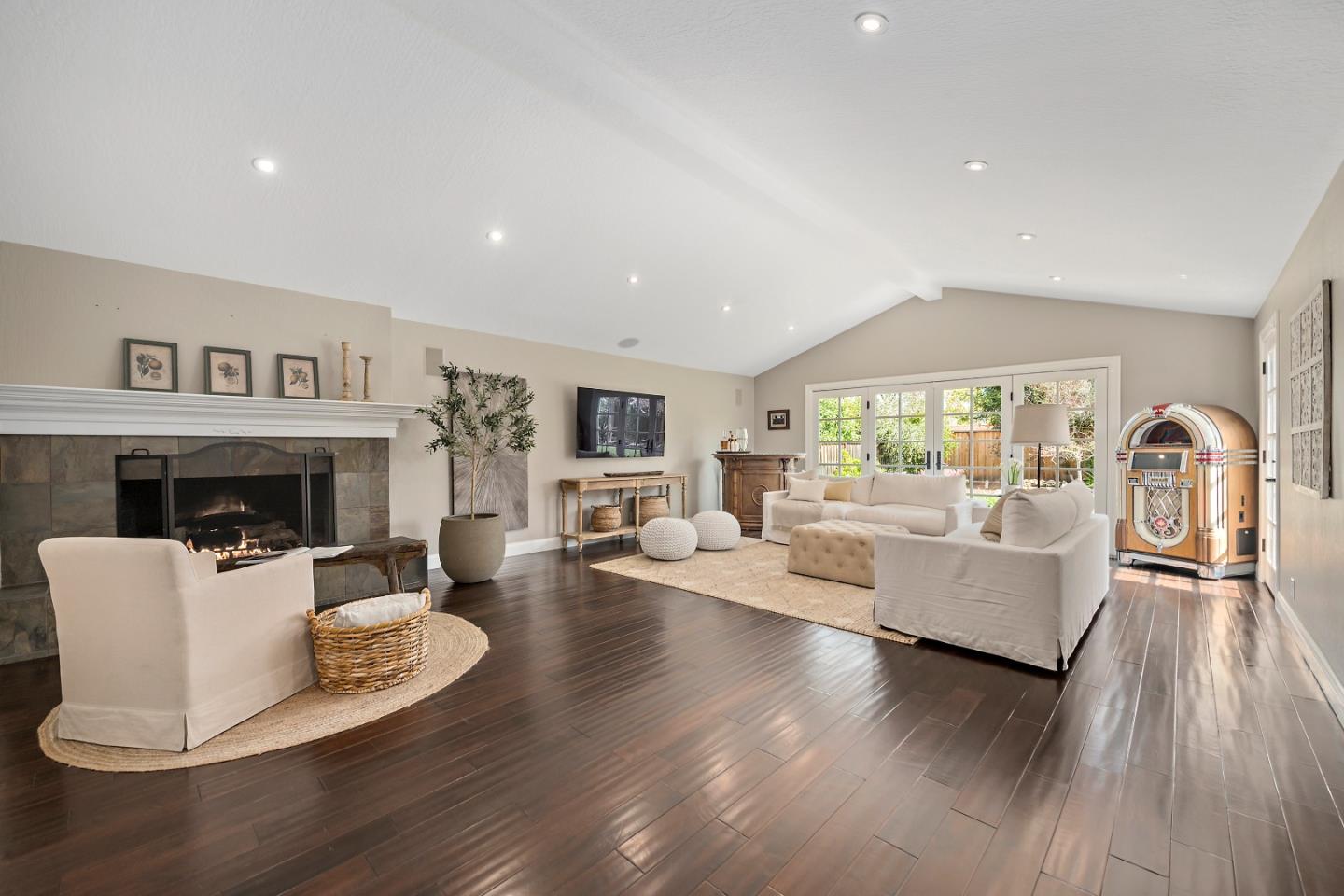 Fabulous Almaden Country Club home on huge lot!! Beautifully remodeled single story with 4 beds, 2.5 baths on a sprawling 12K+ lot! You'll love the fabulous gourmet kitchen with custom cabinetry with built-ins, a 100-bottle wine cooler, GE Monogram 48" gas range, granite counters, and stainless steel appliances. The spacious family room which was expanded in 15yrs ago, has a gas fireplace, vaulted ceilings, and french doors leading to the paved patio. A separate formal dining room with french doors, and a living room with a gas fireplace, exposed vaulted beams, and ample windows allowing for plenty of natural sunlight. All the bedrooms are spacious and both bathrooms are completely remodeled. Gorgeous hardwood flooring throughout, recessed lighting, and newly painted. Sizeable backyard with new sod, pavers, arbor, and new sprinklers. Easy maintenance front and back plus room for a pool. Wonderful location with views of Quicksilver Mtns. Close to shopping, trails, etc. Leland high!