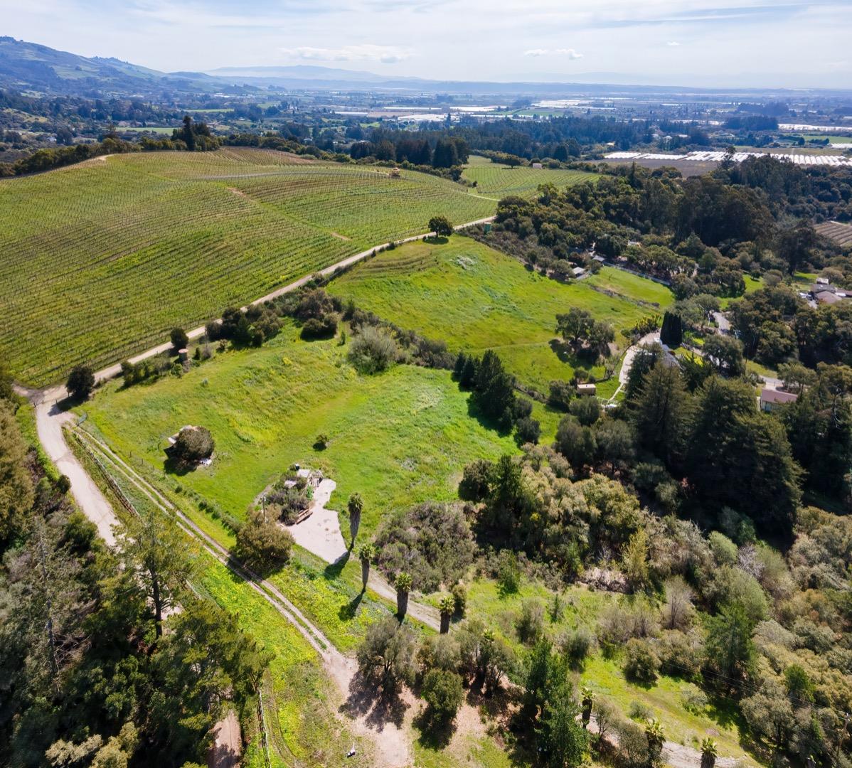 Own 5 acres of open land with picturesque views in Rancho Corralitos. Bordered to the east by Bargettos Regan Vineyard, this parcel is a sunny location above the fog belt. It is surrounded by beautiful redwood, pine and oak trees. To the west, it neighbors a 5 acre, 3-bedroom, 2-bathroom home, which is also available (MLS#ML81922174). The parcel contains a concrete slab and a rudimentary shed. Water can be accessed through the property's private well and PG&E electric service facilities are installed, ready for connection.