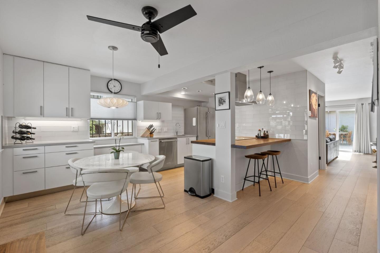 Sleek, contemporary design has been thoughtfully infused into this entirely remodeled living space. Well-manicured & charming, the front facade welcomes you into a 2BD/3BA home where everything is updated & brimming with style durable, planked flooring, crisp white walls, & chic light fixtures are featured throughout. Test your culinary inclinations in the gorgeous eat-in kitchen with ample cabinets, pristine countertops, stainless steel appliances, & subway tile backsplash. Blur the lines between indoor & out by sliding open glass doors from the living room to the spacious back patio, ideal for hosting & entertaining to your hearts content. Both versatile bedrooms accompany luxurious ensuites & boast custom-shelved closets for abundant space. The largest unit in the complex, appreciate reserved, underground parking, in-unit laundry, & a more than desirable location near bustling University Ave to add even more to this already idyllic abode.