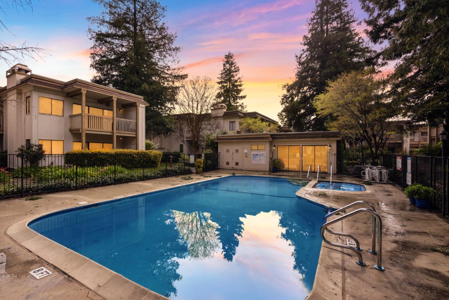 Tucked away in the peaceful park-like Woodside Condominium community, prime location at the very back of the complex! This updated condo features 2 bedrooms and 2 full baths + bonus office/den! The kitchen features new quartz countertops with subway tile backsplash, and plenty of cabinet space for storage. The living room with fireplace is spacious and cozy, with large windows and slider to deck overlooking the community pool. The primary suite offers an xl walk-in closet, oversized shower & dual vanity. Additional features include in-unit laundry, fresh interior paint, wood floors, built-in workstation, and private backyard with deck for your enjoyment. Steps away from the community pool, hot tub & clubhouse. Walking distance to Woodside Plaza with shops & dining. Redwood City offers a vibrant downtown is convenient to major tech companies such as Meta, Box, Amazon, Google, Stanford, Apple & more with easy access to Highways 101 and 280.