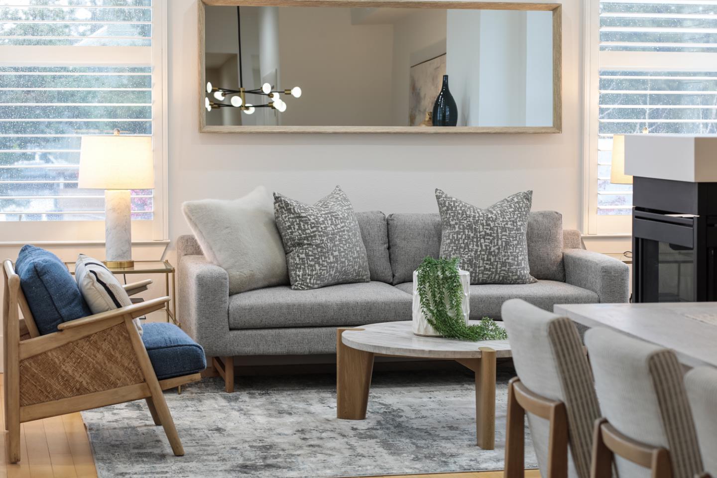 Los Altos Schools on Distel Drive (not El Camino). Welcome to a luxurious and simple life in this home with secure underground parking garage, elevator, and tons of space. Through the front door you are instantly struck by the high ceilings, floods of natural light, and living and dining room is complete with a gorgeous see-through gas fireplace. The kitchen has a gas range, quartz countertops, and stainless steel appliances. Behind a pocket door is the stackable washer and dryer with additional pantry space. The first bedroom off the kitchen is perfect for an in-home office or cozy bedroom. Across the entry sits two more large bedrooms and hall bathroom. The massive primary suite features a large walk in closet and large bathroom with dual sinks. This renowned building has 29 premium homes. Located off of El Camino, near top-rated Los Altos schools, Whole Foods, PAMF/Sutter, Doggie Day Care and more. Includes 2 secured underground parking spaces and storage area.