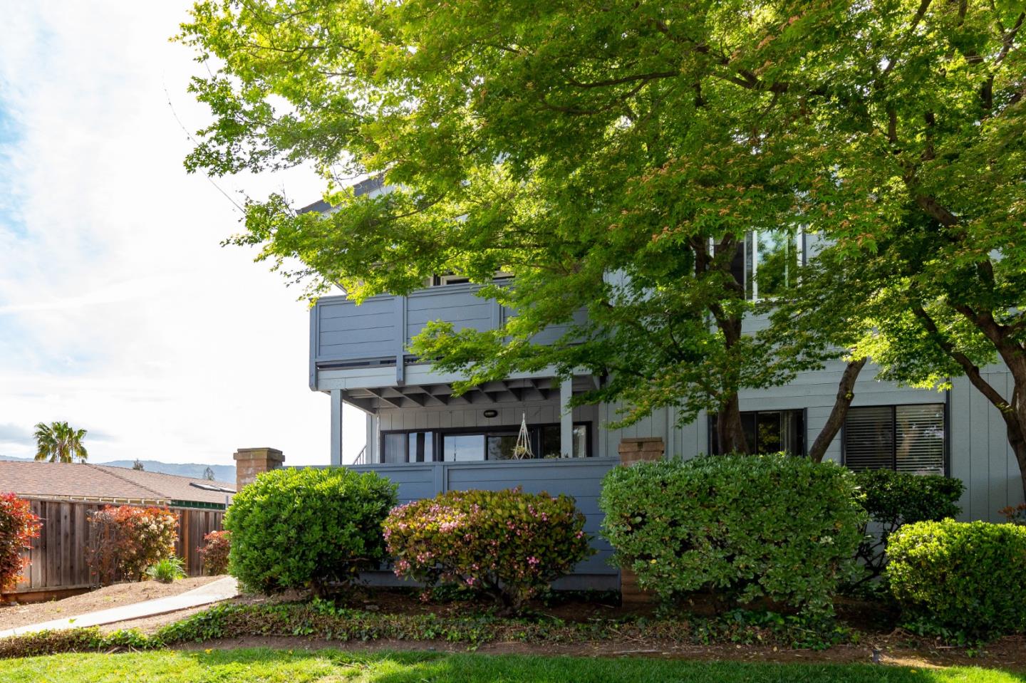 Nicely updated end-unit condo in the highly desirable Pine Forest Community of Cambrian Park. Upon entering you will be met with rich wood laminate flooring, freshly painted interior in neutral tones, high vaulted ceilings, recessed lighting and a cozy wood burning fireplace. The kitchen boasts granite counters, Cherry cabinets, stainless steel appliances, including a new stove/range, breakfast bar and a spacious pantry. Both baths have been updated including decorative tile tub/shower enclosures and stylish vanities. Other amenities include serene balcony, double-pane vinyl windows throughout and a large one car garage. Excellent location near Branham Park w/basketball & volleyball courts, exercise path and playground and mere minutes to commute arteries and nearby shopping. Adding to the appeal..... Enjoy highly rated schools including Leitz Elementary, Dartmouth Middle and Branham High