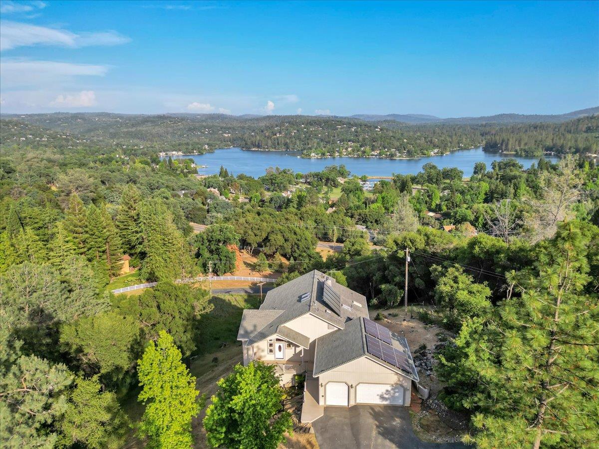 Spectacular lake view with thrilling new price! Soaring cathedral ceilings blend with an open gourmet kitchen and ample decks to create the perfect setting for entertaining or just soaking up the panoramic lake views, golden sunshine and pine-scented air. This contemporary 3-bedroom home features two large suites, each with its own deck, plus a third bedroom that also offers lake views from the bay window. A massive 3-car garage with extra parking for your RV or toys completes the package. This home is NOT in the Lake Wildwood HOA, so there are no HOA fees.