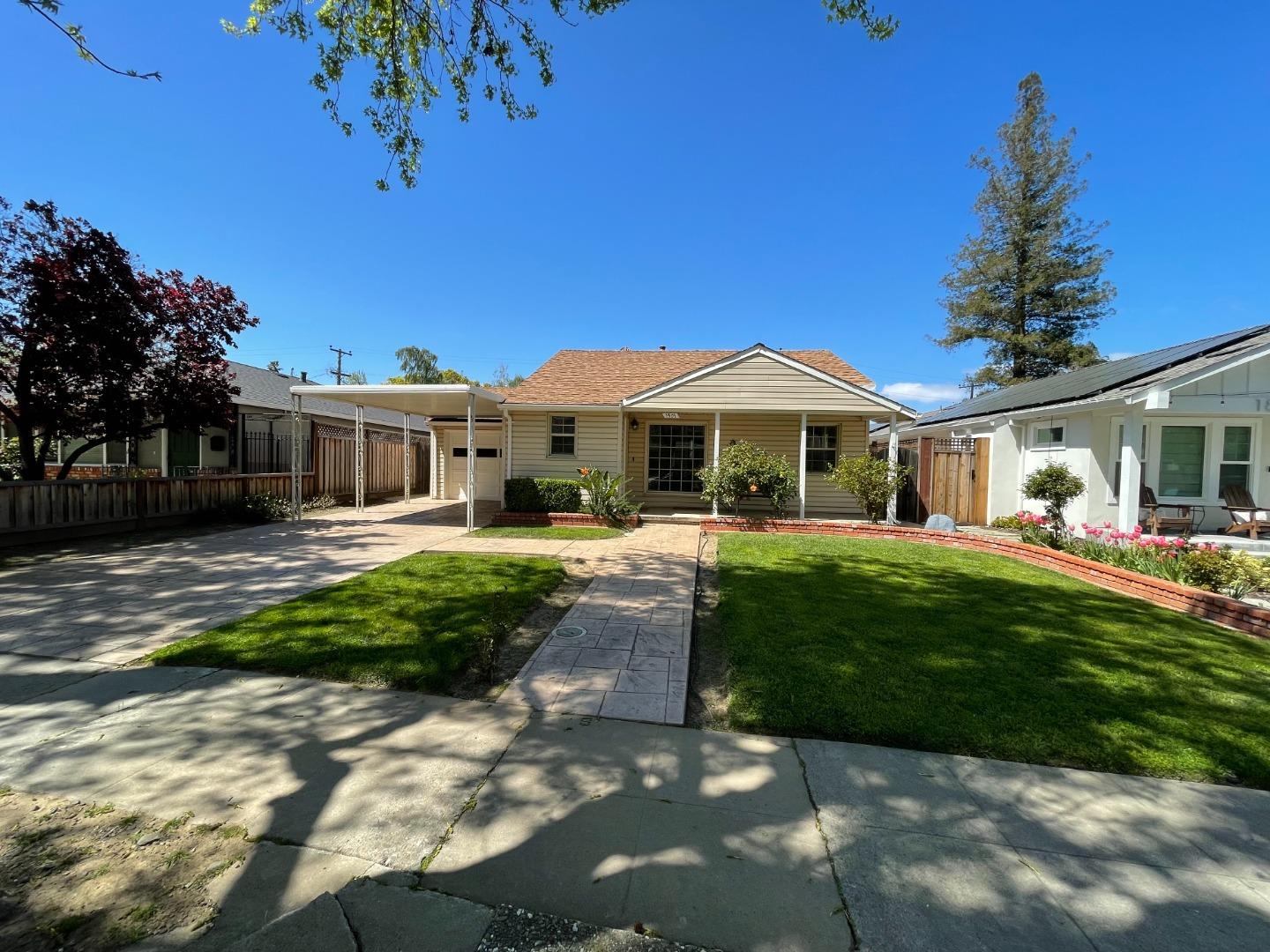 Bright and Airy, Charming house been Remodeled and in ready to move in condition, located on a tree lined street in a sort after Willow Glen neighborhood. Property is on a large lot with many possibilities. Sellers have recently installed New laminate flooring, New interior Paint and New Master shower walls. New plumbing fixtures, New Led light fixtures. Additional upgrades done over the years are, Remodeled Kitchen w/granite countertop, Dual pane windows, Master bedroom suite with 3 closets, attached garage and covered carport. Backyard has children pay area and great place to entertain it also has an extra-large storage shed. Walking distance to downtown Willow Glen to your favorite restaurants and shops.