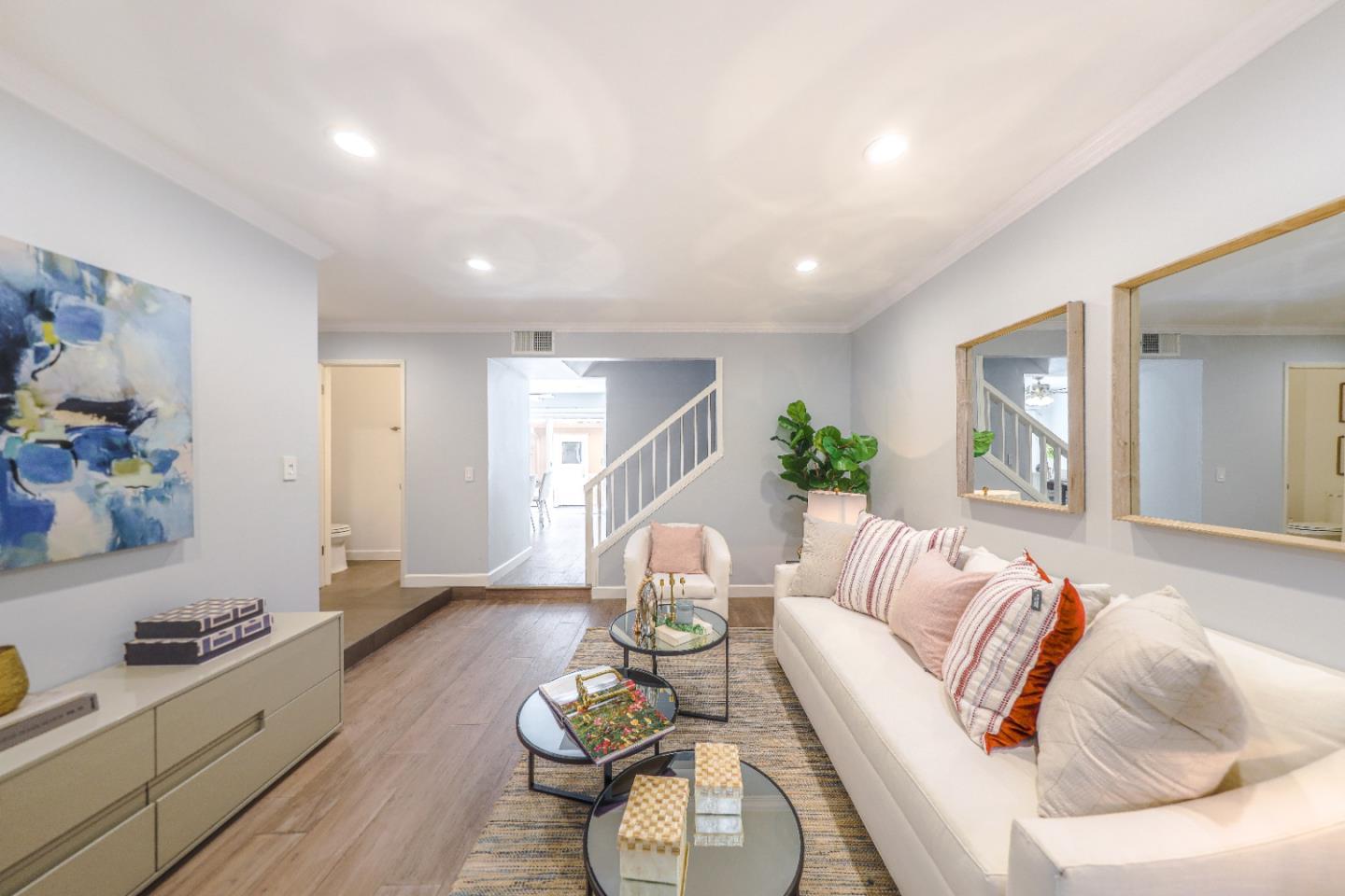 Beautiful move in ready 3 bedroom townhome in walking distance to top public schools Dilworth Elem, Miller Middle & LYNBROOK High! This lovely home was fully remodelled with high end finishes and upgrades at a cost of over $100k. Kitchen with high quality cabinets, quartz counters & stainless steel appliance; updated modern bathrooms; Newer copper pipping and interior paint; high end engineered wood floors and Porcelanosa tiles throughout, recessed dimmable LED lights; energy-efficient dual-pane windows and patio door, and backyard offering privacy with beautiful pavers. A new Carrier central AC and furnace were installed for your comfort. Vaulted ceiling in primary bedroom and bathroom. Enjoy the garden style Regency Park community with pool, spa, club house and children playground. Convenient location near Orchard Farms shopping centre, schools and Rainbow Park. Easy access to highways and expressway for commute.