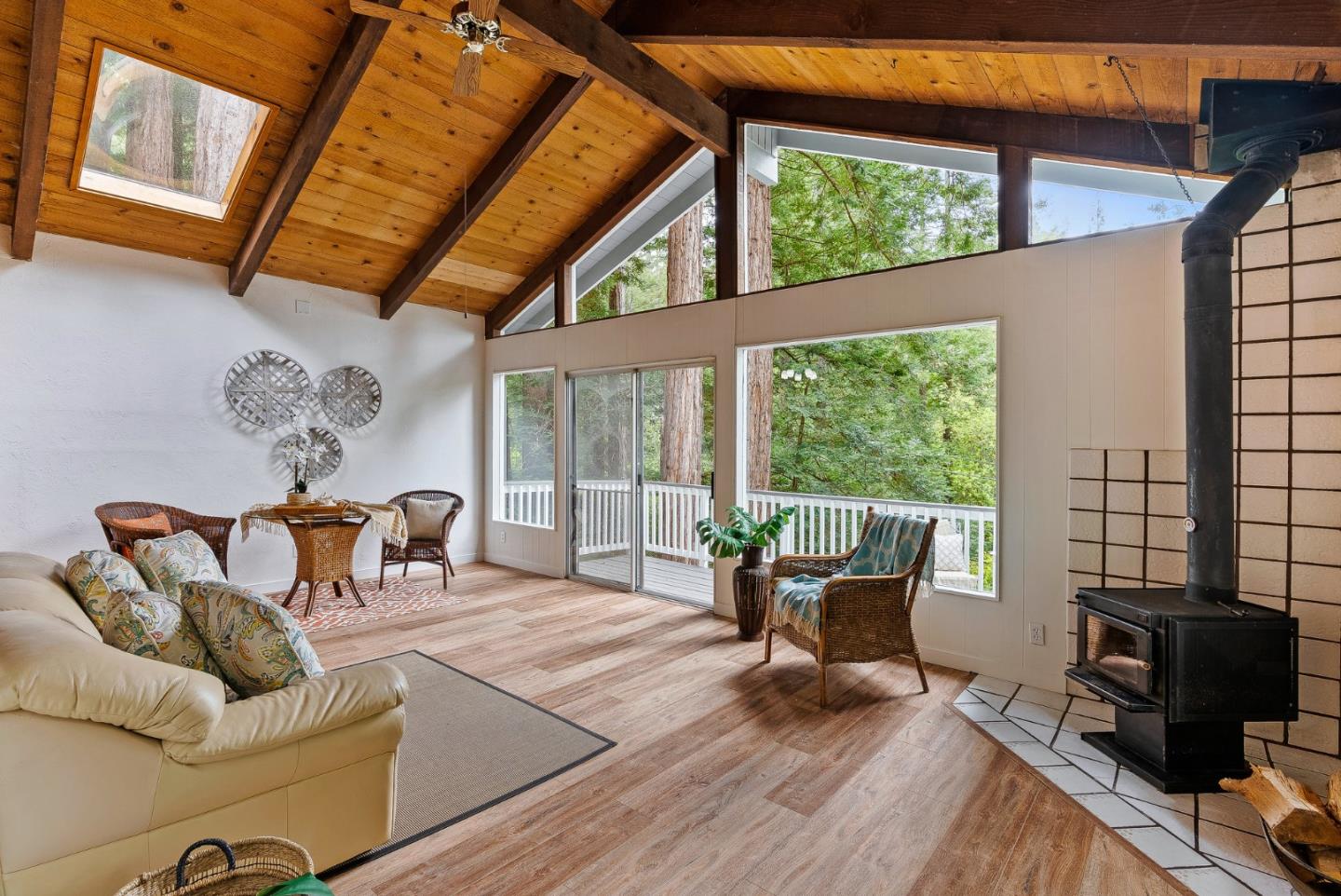 Welcome to 1173 Lakeside Dr., a charming home nestled in the picturesque town of Felton, in the wonderful community of Forest Lakes! This cozy & inviting home boasts open beamed ceilings that create a warm & welcoming atmosphere. The newly installed LVP flooring & fresh paint add a touch of elegance & charm to this sweet home. As you step inside, you'll notice the abundance of natural light that streams in through the skylight & numerous windows, which allows the beauty of the surrounding trees to be enjoyed from every room. This recently refreshed home has 2 bedrooms & 1 bath on the main level, with an additional bedroom/bonus room downstairs. New quartz countertops and stainless steel sink welcome you into the kitchen. Step outside onto the generous deck to enjoy a cup of coffee or your favorite adult beverage. The views of the lush trees and serene setting provide a peaceful ambiance that is hard to find. This home is perfect for the outdoor lover, with parks just minutes away!