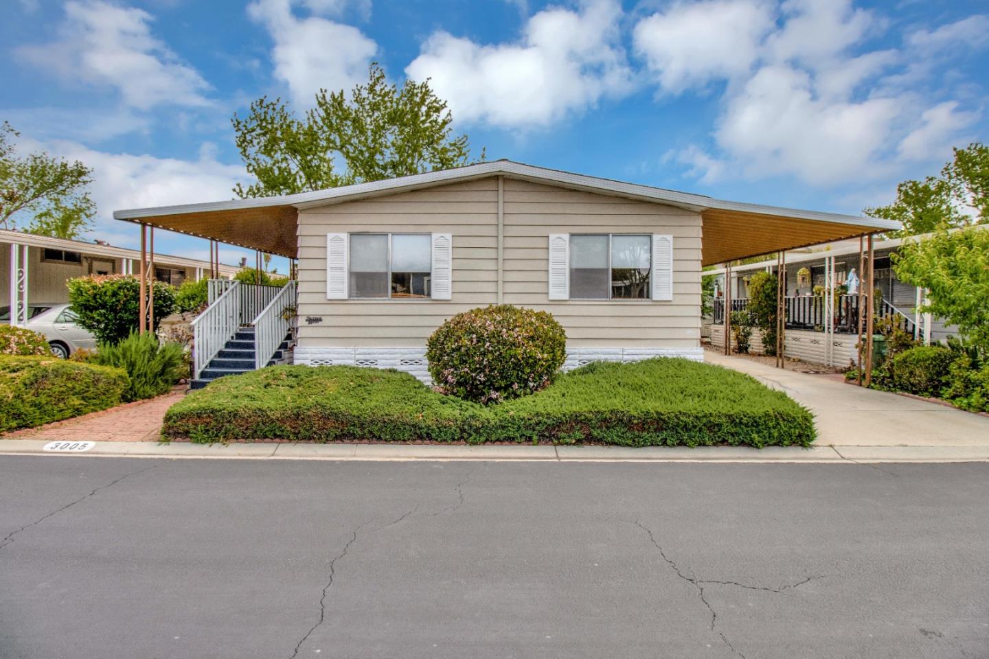 The mobile home has been well maintained and is ready for move-in. A three-bedroom, two-bathroom home located in the highly sought-after Woodbridge senior community. Open floor plan with spacious living room, family room, and dining area, enclosed storage in the family room.Central A/C. Washer and dryer are also included! It has a gorgeous kitchen with stainless appliances, beautiful white cabinetry, plenty of cabinetry, and counter space. As of 2018, the owner has upgraded the home (Kitchen, laminate & tile floors, solar tubes for natural light, recessed lighting, the carport step... The home has an oversized front porch. We offer a mobile park in Silicon Valley with the best location. Located close to banks, a Target store, a market, restaurants, a bus station, and Freeway 101. You will love living here. Space rent is $ 1133/month.Requirements for Senior Parks: 1. One must be over 55, no one under 18. 2. The income shall be three times the land rent plus any mortgages if any. MUST SEE