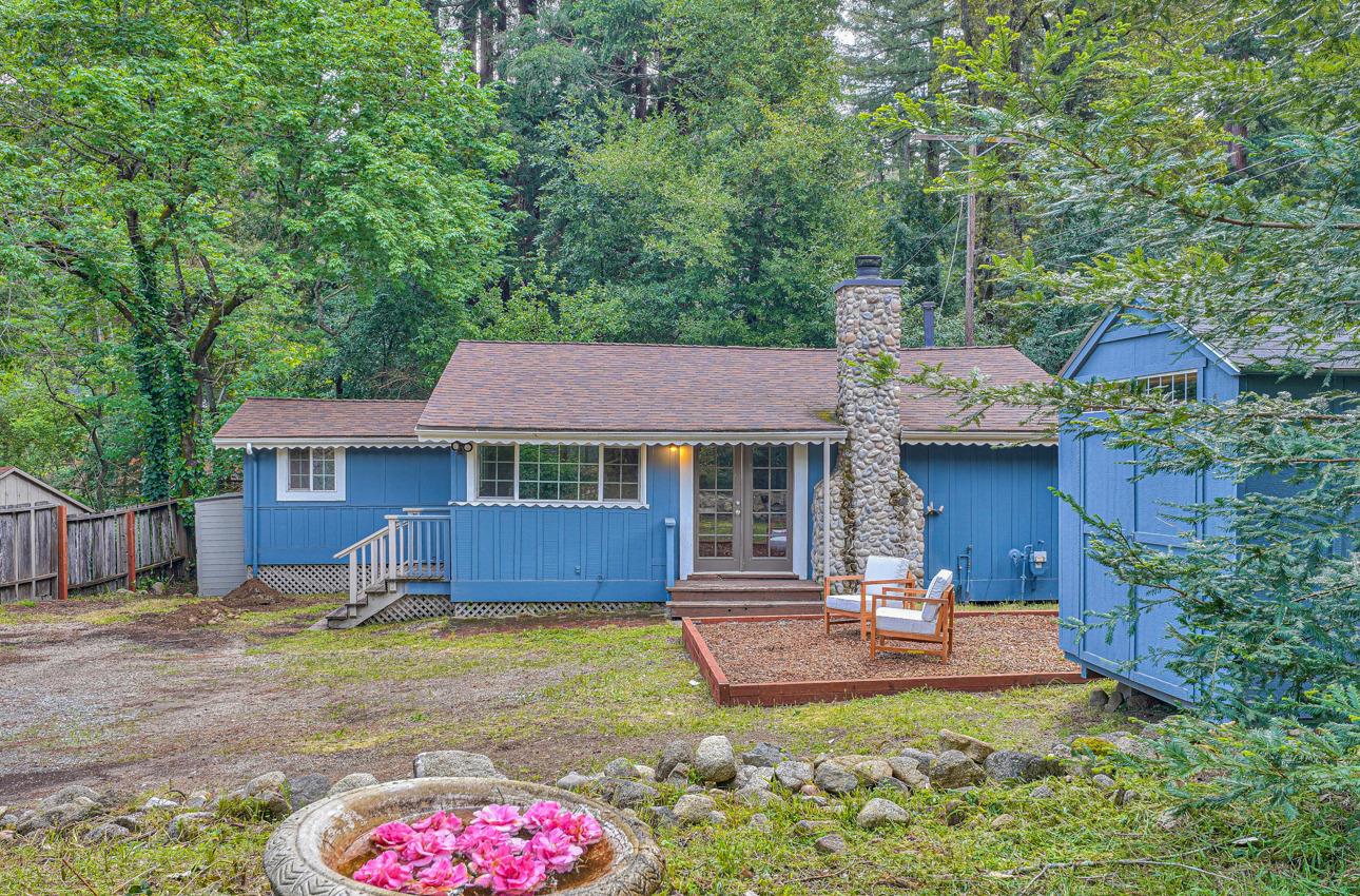 Venture down a quiet road surrounded by mother nature's finest redwood trees and you will arrive at this enchanted retreat. A sense of adventure and wonderment surrounds you from the moment you step foot on the two-bedroom, one-bathroom property. The rustic living room exudes charm through its darling features, such as the vaulted wood beam ceilings, rustic wood floors, and a stone fireplace reminiscent of Little House on the Prarie. A cozy, eat-in kitchen and French doors that lead to the expansive, light-filled oasis will have you at "hello". The unbeatable, forested location just a short walking distance to the lodge makes this special place with endless possibilities a must-see gem!