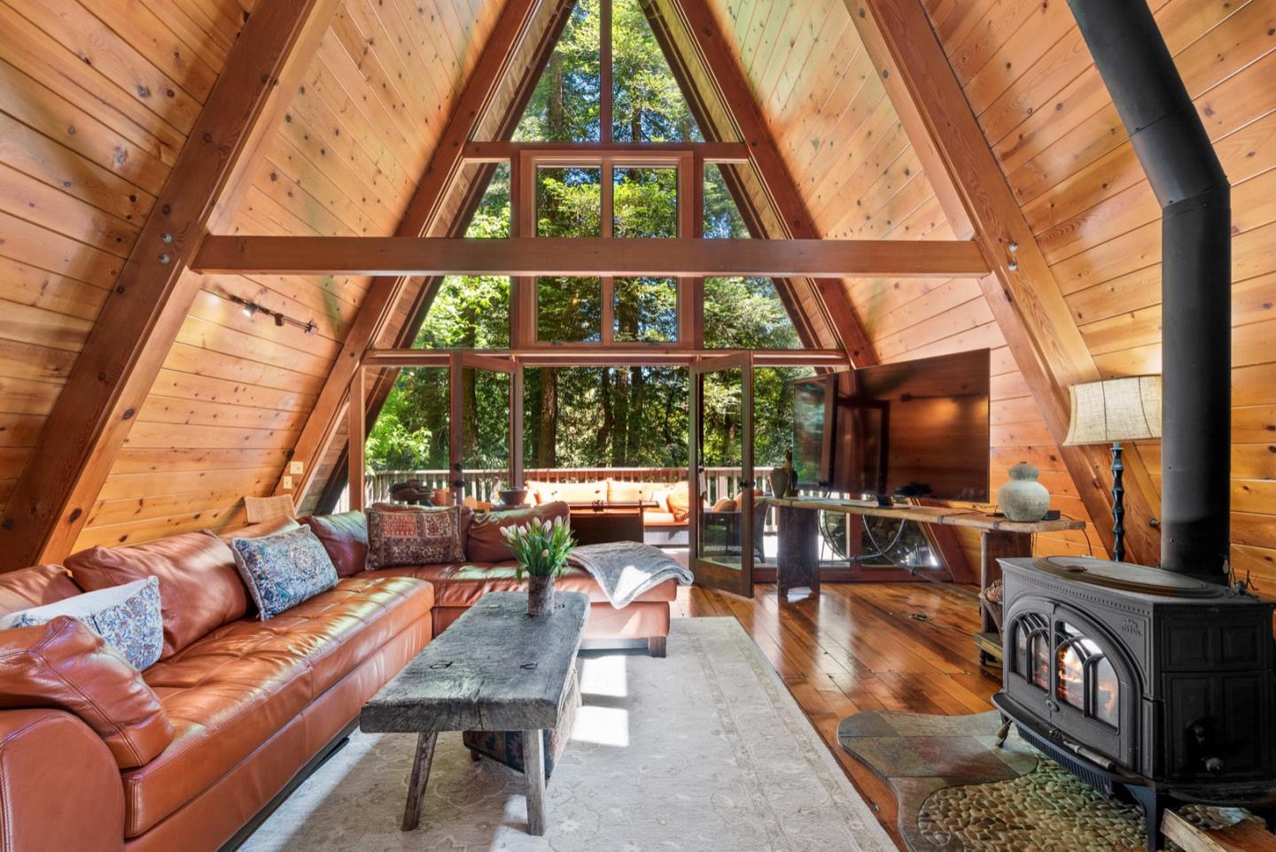 A super soulful home on an enchanted half + acre parcel with a bonus studio! There is something very powerful about the architecture of an A-Frame house. It commands the energy of the space in a tangible way. This home was designed with an artistic flair and attention to detail. It is truly a beautiful space that takes in the natural light and views of the surrounding forest. The interior woodwork and walls of glass bring the natural world in. The home features a spacious dining and living room that opens to the kitchen. There are 3 bedrooms, 2.5 bathrooms plus an office. It is easy to enjoy the outdoors with multiple patios and deck spaces. Mature persimmon, fig & lemon trees accent the sunny garden and patio area. The downstairs bonus studio has many potential uses. 2 car garage with a large workshop/storage room, covered carport and plenty of off street parking. Detached structure with power could be used as an office, craft room or home gym. Close to beaches and the conveniences of downtown Santa Cruz, yet it feels worlds away. Come for a visit, stay for a lifetime.