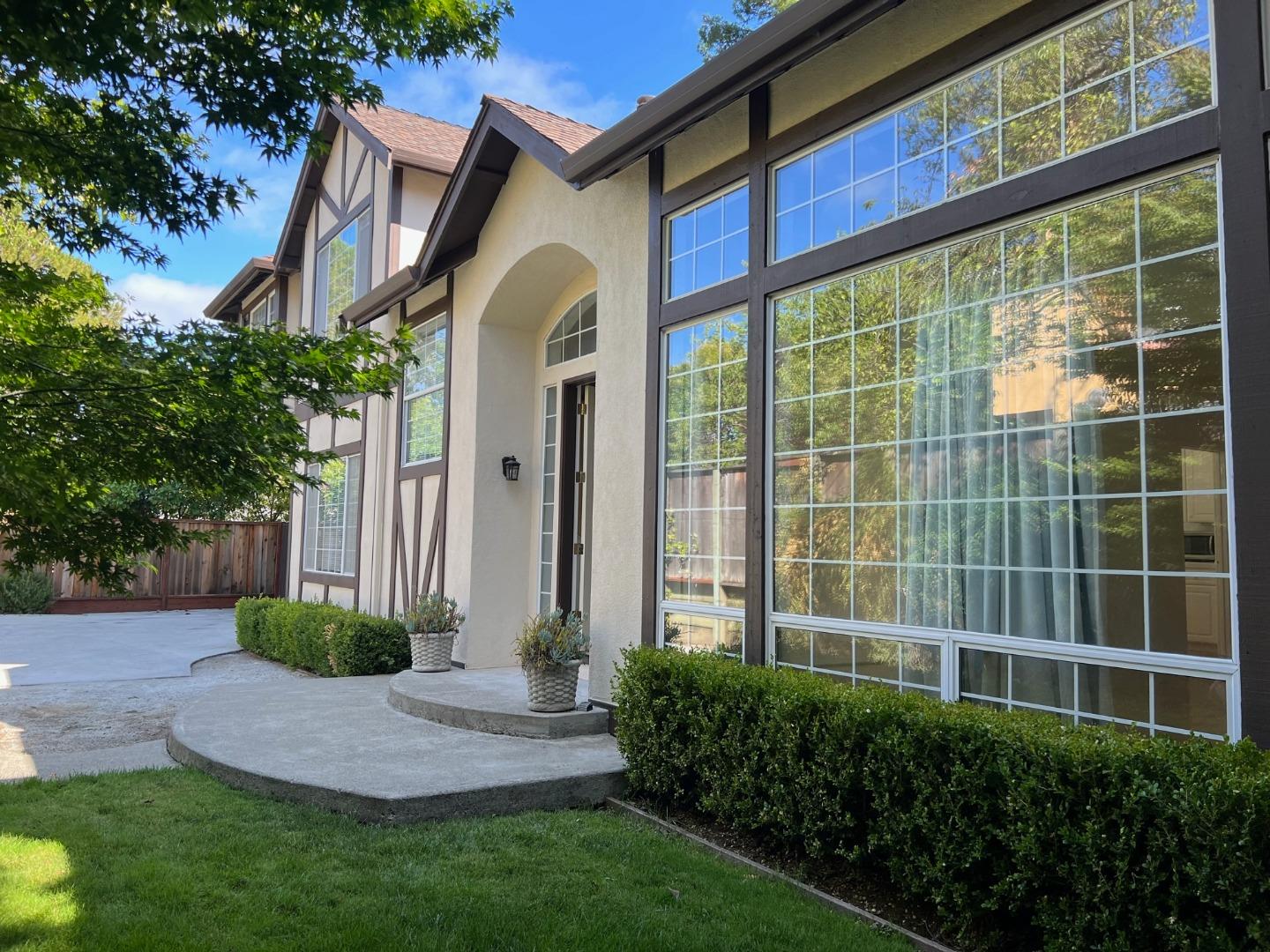 Down a private driveway on the border of Atherton sits a charming Tudor home with an excellent floor plan and generous living spaces. Well maintained and bright throughout, the lower level of the home features a living room with fireplace, huge windows and cathedral ceiling, a dining room with sliding doors to the tranquil back yard, a white tile kitchen and breakfast room, family room and half bath. An indoor laundry room off the kitchen leads to the 2-car attached garage. Upstairs are four bedrooms, three baths including a superb primary suite with large bath room and walk-in closet. The private back yard provides a pleasant lawn area and sunny deck area for afternoon entertaining. Available 7/1/2023.