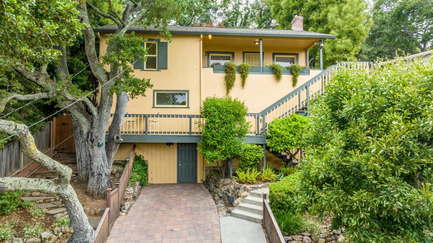 Charming property in its own private world. Pavered Driveway between terraced gardens leads you up off the street to enjoy encompassing views of the Beautiful Belmont hills. The main house has 2 BR,1 BA w/classic front porch, vintage front door, refinished inlaid hdwd flrs, cottage windows, recessed & custom lights, stone fplce, kitchen w/tiled walls, granite counters, stainless appliances & greenhouse window. Dining Rm French Doors open out to sheltered private fenced terraced gardens w/mature plantings complimenting stone steps, serene seating areas,raised garden beds + enclosure space. Drip system services front & back grounds & the detached Gar has remote. Basement Apartment accessed outside from ground level as well as from interior access has its own laundry, BA, BR, living rm & wet bar; enjoy this added space or use it separate for guests. This charming Garden Cottage & Solid little fortress perched high will have you feeling safe, cozy and blessed to call this home.