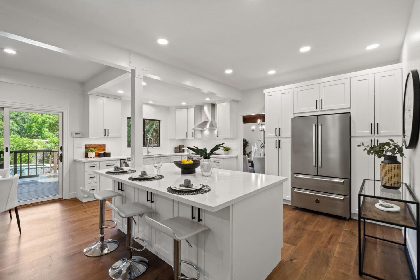 Welcome home to the over the top resort vibe with lush landscaping, mature trees, specimen plantings at this beautiful property. Situated on an extra-large 21,210sf lot, this home 2,790sf home offers a brand new kitchen with quartz counters, stainless appliances, big prep island and tons of cabinet space and overlooks the family room with fireplace, wet bar area and slide to the expansive deck overlooking the beautiful yard! Living room and formal dining welcome you with vaulted ceilings and new wood floors! 4 spacious bedrooms, including a huge primary suite with sitting area and private deck overlooking the grounds! This home is perfect for indoor/outdoor California living for the modern day buyer. This highly desirable area is known for its beautiful surroundings and proximity to nature - surrounded by trees and parks, including the nearby Edgewood Park & Pulgas Ridge with fantastic hiking trails!