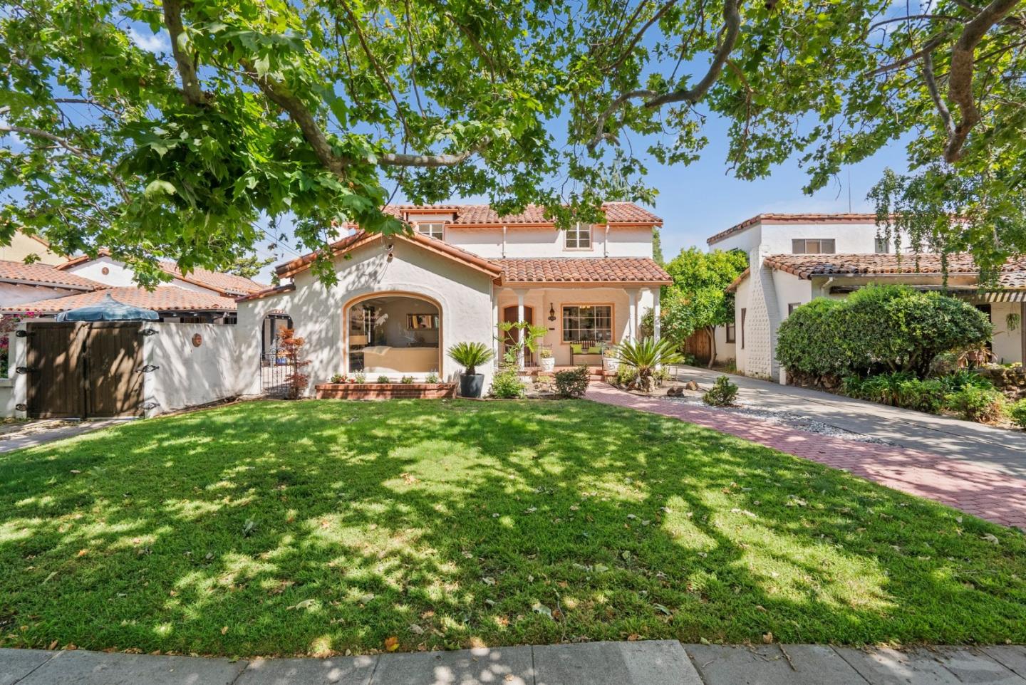 Located in Shasta-Hanchett Park historic neighborhood on one of the most coveted wide tree-lined streets in the greater Rose Garden district. Built in 1936, this home has 4 bedrooms and 2.5 bathrooms with tastefully appointed, architecturally superior finishes that create an ambiance and showcase old world appeal. The distinctive, one-of-a-kind interior includes a formal living room with ornate tiled fireplace, formal dining room, and kitchen nook with built-in cabinets. Downstairs have two bedrooms, half bath and full bath with console sink, shower, & tub. Upstairs has a large primary bedroom and adjoining 3rd bedroom with WC and bathroom w/ shower over tub. Also included is a laundry room, large basement, and upstairs walk-in attic. Landscaped backyard with patio area and detached two-car garage. Close to The Alameda retail and restaurants, neighborhood schools, Rose Garden Municipal Park, Zanotto's local market, freeway access to 880, 87, & 280 and so much more - A must see!