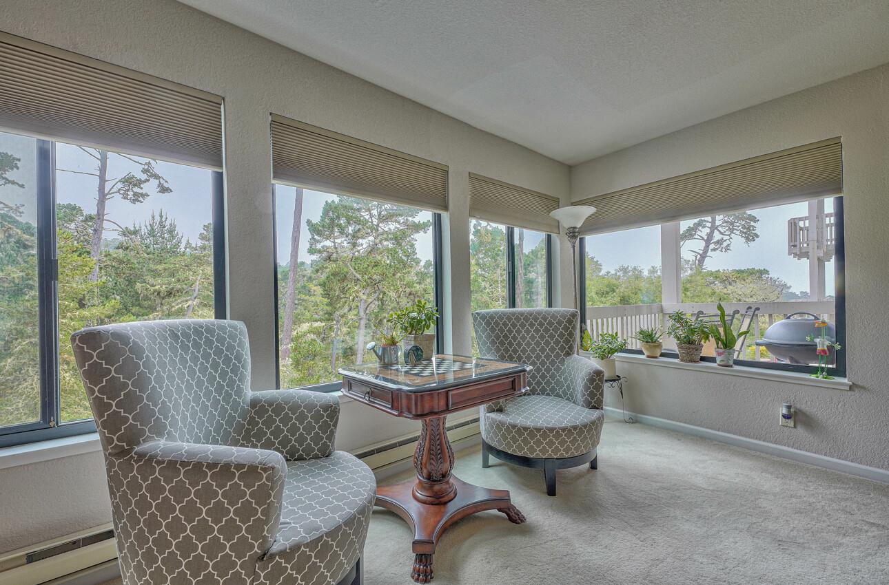 Shepherds Knoll is perfectly located just inside the gate of Pebble Beach. This bottom floor unit has views of the forest & ocean. Once inside you are welcomed by an open-concept living/dining area, with large picture windows and patio doors that invite cool breezes and world-renowned golf course sunsets into your indoor world. The home has been well maintained and is equipped with a cozy fireplace for those cooler nights which invites you and your guests to gather and enjoy. The kitchen features an abundance of cabinetry for all of your culinary tools, plenty of countertop space, and a sweet eat-in kitchen nook. Guests are sure to feel welcome in this 2 bedroom 2 full bath floor plan. Enjoy plenty of personal space in the primary bedroom with bright airy windows. The condo also includes an in-unit laundry for ease of daily living and includes a private garage which is an asset for all your outdoor beach gear, golf equipment, or storage. Live your best life in this stunning unit.