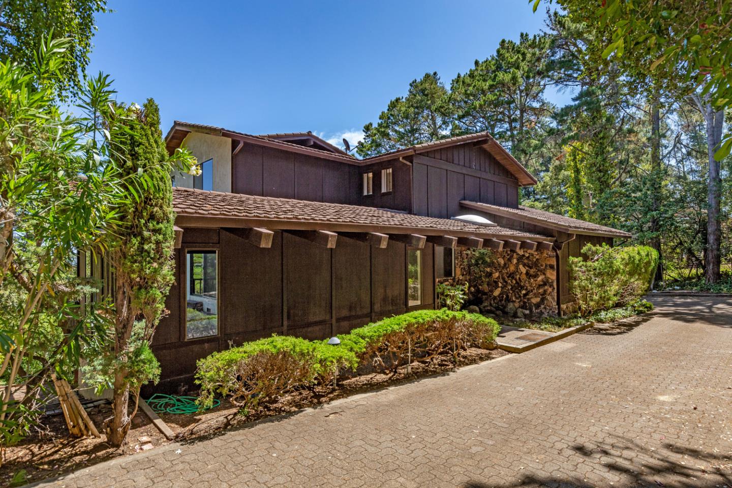 Tucked away from the street, this spacious home showcases a distinctive retro ambiance tastefully updated for modern living. A fresh neutral palette and some new flooring combine in a bright and light setting enhanced by numerous sliding glass doors. Spanning three levels, connected by an open-design staircase,the home looks out to the natural beauty of the surroundings and glimpses of the San Francisco Bay and airport runways from some rooms. The main and lower levels boast generous formal and everyday living spaces, including an office/den and recreation/fitness center. There are four bedrooms upstairs, highlighted by the primary suite with private deck. Several additional decks beckon outdoor entertaining, connecting to enchanting grounds with level space to linger and play. Embrace the home's appeal today or envision your own personalized touch, all while enjoying the convenience of access to both Silicon Valley and San Francisco, nearby hiking trails, and excellent local schools.