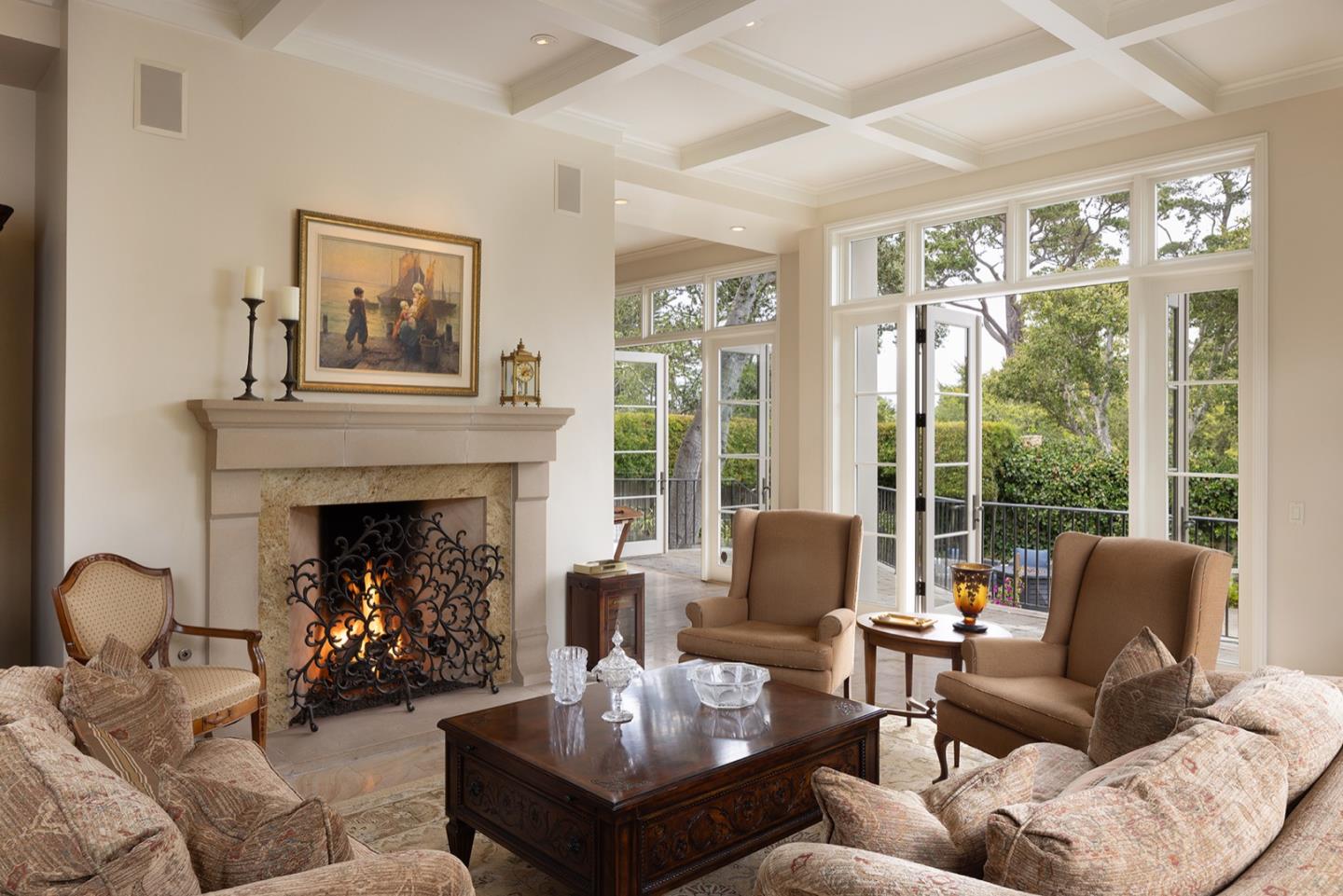 A meticulously designed and built home by Fletcher & Hardoin Architects and Groza Construction, with interior design by Jan Gardner. Details exude curated refinement; Downsview cabinetry, Rocky Mountain Hardware, Beaumaniere French limestone floors, and granite and marble countertops. Offering a four-bedroom layout, this home allows you to choose your primary ensuite - whether on the main level or upstairs, where sunset views await. Step into the main living area, awash in natural light, thanks to 12' ceilings, walls that open to the lush garden, inviting pool, and al fresco stone fireplace. These spaces seamlessly merge indoor and outdoor living, facilitated by the array of 8' French doors. Entertaining is effortless, whether hosting outdoors, embracing wine tasting in the custom cellar, or cozying up for a movie by the fireplace in the den. Situated within a 5-minute drive to Carmel-by-the-Sea, and a short walk from Alverado Street, convenience meets luxury in this remarkable home.