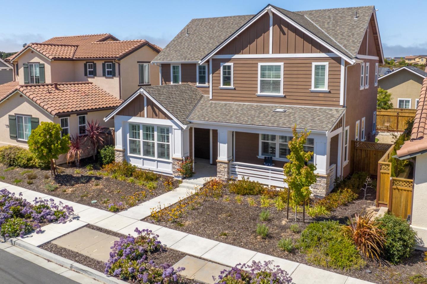 Welcome to this impeccably maintained Hartford model home located in desirable East Garrison! This home with soaring high ceilings is only 5 years old, and features many upgrades throughout. The chef's appointed kitchen boasts modern stainless steel appliances, a large granite island, 6 gas burner stove, and a large pantry. The living space downstairs is perfect for entertaining and daily life with its open floor plan that connects the dining area, living room, and kitchen. Walk up the extra wide carpeted stairs to the 4 bedrooms, 2 large bathrooms, and laundry room. The primary suite features a large soaking tub, a separate shower, and a walk-in closet. Outside there is a both a covered porch and a covered back patio for al fresco dining. The attached 2-car garage is super clean, and the back yard is fully fenced. The entrance to the garage is at the rear of the property off of a private lane. Enjoy easy access to restaurants, beaches, walking trails, schools, and the airport!