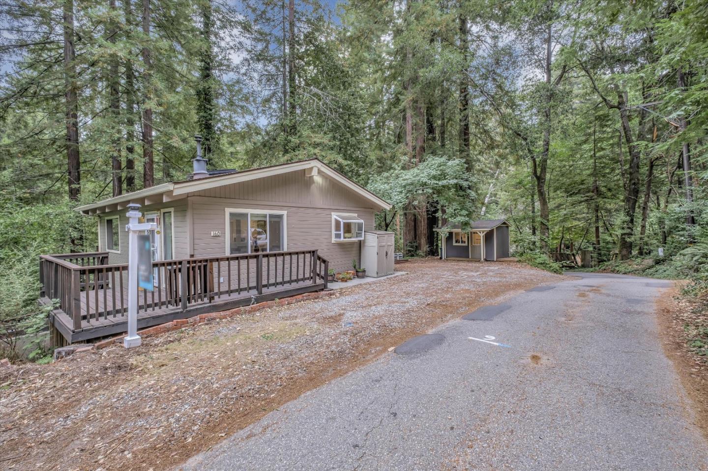 Discover tranquility in this charming 2-bedroom, 1-bath Boulder Creek home, cocooned within the enchanting redwood forest. Inside, a clever reverse floor plan showcases a spacious open first floor, comprising a well-appointed kitchen, dining area, living room, full bath, and a practical laundry room. Below, two generously sized bedrooms open onto a lower deck where you can relish the natural beauty and the calming melodies of the nearby creek. Numerous picturesque deck areas invite you to connect with the great outdoors, providing captivating views of the garden and the meandering creek. Nestled in a peaceful neighborhood close to Bear Creek Road, this property offers a perfect blend of seclusion and accessibility. Whether it's your permanent retreat or a weekend escape, this Boulder Creek jewel is poised to bring your nature-loving aspirations to life.