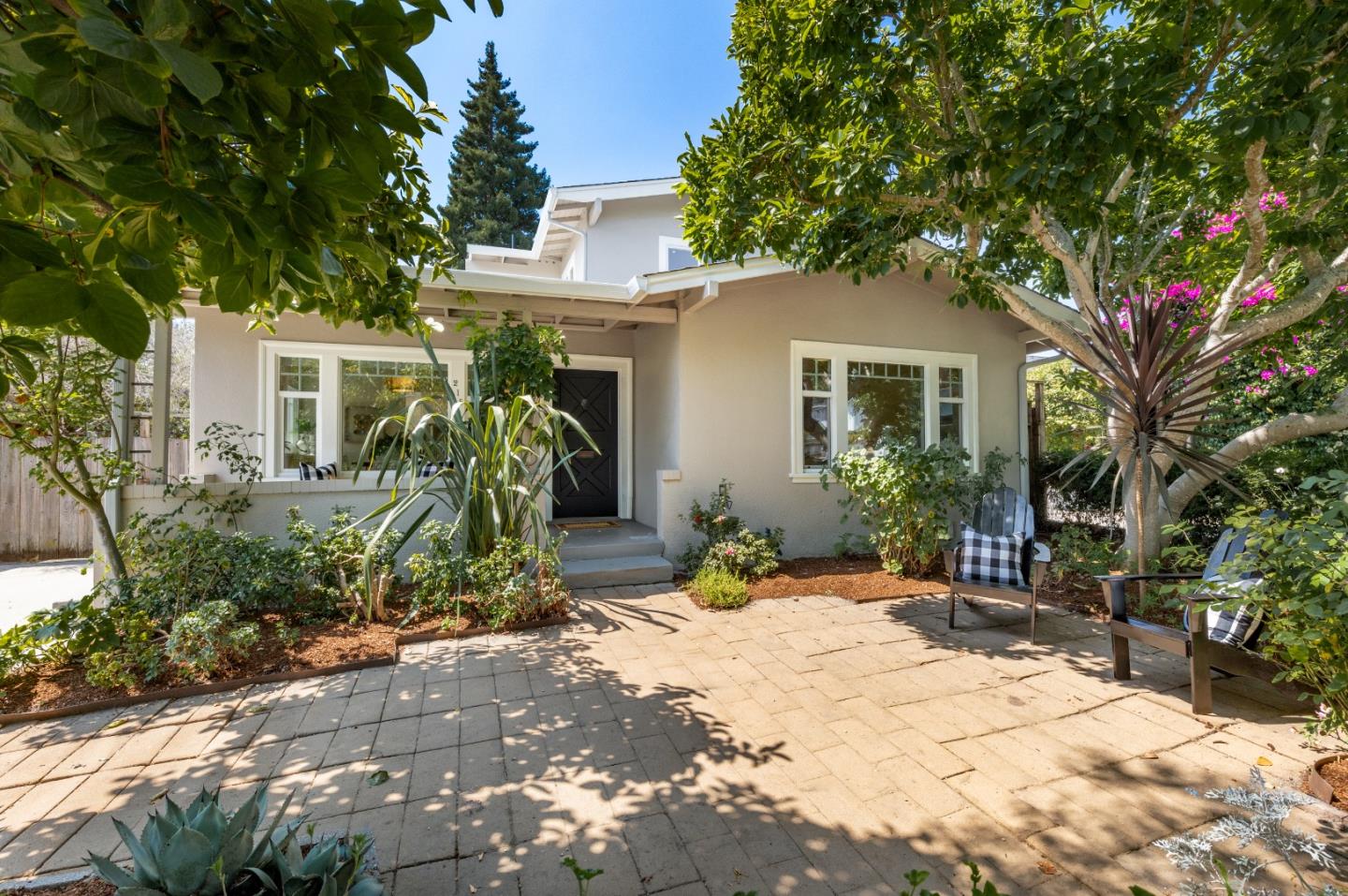 Nestled in the coveted Lower Westside Neighborhood, this 3-bedroom, 2-bath gem exudes timeless charm. The covered front porch and 1930s architecture combined with updates for modern living, create a captivating appeal. Inside, pristine hardwood floors lead to a bright ambiance. The spacious kitchen with a cozy breakfast nook boasts quartz counters and stainless-steel appliances. A formal dining area features a built-in buffet. Two bedrooms and a full bath on the ground level offer convenience, while the primary suite upstairs includes a private deck overlooking lush gardens. The primary bath indulges with a steam shower and sleek quartz counters. Flex space transforms into an office or 4th bedroom. Outside, fruit tree-adorned gardens offer a picturesque backdrop. Rear alley access features a charming bridge over a tranquil creek. A detached garage adds versatility. Minutes from Westlake Elementary, shopping, dining, and the beach, the location is very walkable and a biker's paradise.