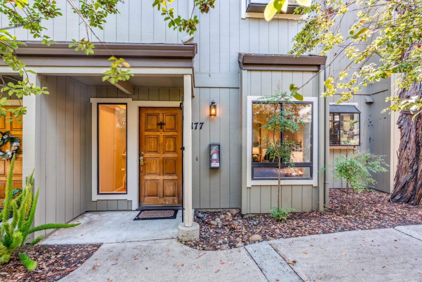 Amidst verdant trees and inviting pathways, this home marries accessibility with a tranquil ambiance, effortlessly connecting you to amenities. Enjoy the sounds of birds and squirrels from a plant-adorned deck or the nurtured garden area. A flowing layout connects the greenhouse-windowed kitchen with all-new stainless steel appliances to the dining and living areas, all bathed in natural light through skylights and windows. The primary bedroom retreat nestled downstairs has a private patio and closet. The home's heart is a lovely fireplace, promising cozy evenings by the hearth. Join a community where camaraderie thrives under a responsive HOA's vigilant, nurturing care that maintains the grounds. Experience modern convenience with a new water heater and shared composting setup. Enjoy easy access to Sky Park and other SV area parks and the inviting pool and hot tub facilities. Moreover, the property is a gateway to Santa Cruz or San Jose's airport and other attractions.