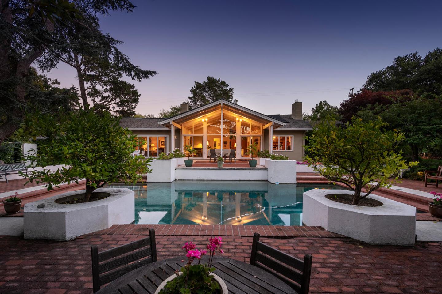 Situated in an idyllic setting on a private & gated .54-acre lot, this sprawling single-level home merges timeless elegance with modern amenities in over 2,800s.f. of living space. Offering 3 bedrooms & 2.5 baths, the graceful interior unfolds with a grand marble foyer that opens to the stunning living room with cathedral ceiling, huge floor-to-ceiling windows that frame the incredible rear grounds, and the adjoining dining room with fireplace and built-in display case. The chefs kitchen, with high-end appliances, center island with prep sink, and breakfast nook, opens to the family room with fireplace, wet bar, and direct access to the amazing yard. 3 sizeable bedrooms, including the primary suite with spa-like bath, are situated in a private wing, while the public rooms, half bath, mud room and 2-car attached garage comprise the other wing. The expansive grounds with level lawns, lush landscaping, pool, and huge, covered entertaining patio, offer the best of indoor/outdoor living.