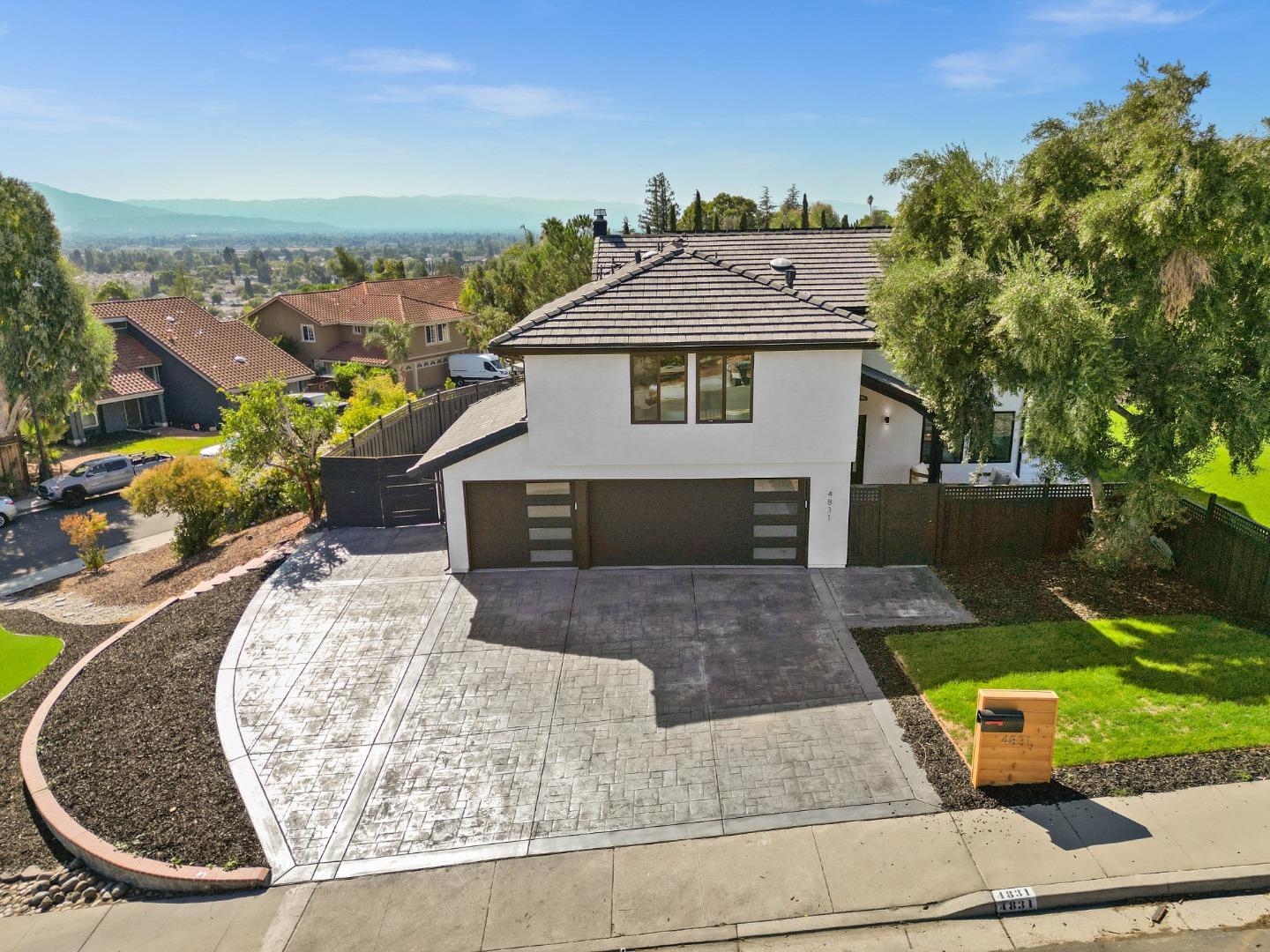This is a crown Jewel, from the moment you walk in you will be in awe. Fully remodeled home situated on a corner lot. Great curb appeal with bright & open floor plan approx 2354sf. 5 bed | 3 1/2 bath w/3 car garage. SPC Waterproof flooring and recessed lights throughout. High-end tile & quartz counters in Bathrooms & Kitchen. Stainless steel appliances, open shelving, plenty of cabinet space and a Farmhouse sink. The living room has an electric fireplace w/built-in shelves on both sides. The laundry room is ready to go with washer & dryer hookups and built-in shelves. All 5 bedrooms are upstairs including 2 master suites. Extra large backyard w/newly plastered in-ground pool including new blue-tooth app-controlled pool equipment, stamped cement and plenty of room for an ADU. Brand new water heater, garage doors & openers, new fresh grass, upgraded HVAC, Solar owned. Close to all amenities including schools, shopping, dining, and all major freeways including 101, 85/87, 280/680 & 17