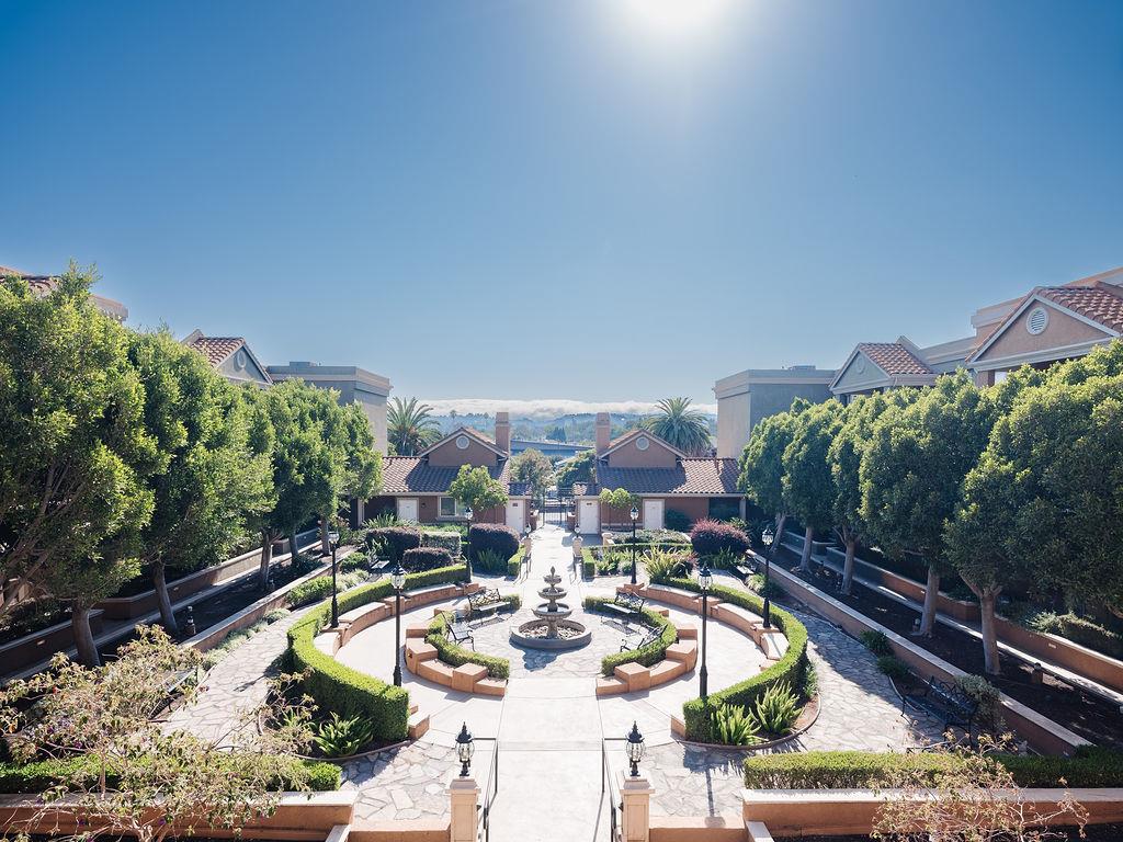 Centrally located condo with hardwood floors, air conditioning, large private patio and 2-car garage parking near downtown San Mateo. Enter through a park-like courtyard with mature landscaping, fountain, and views. Open concept floor plan with high ceilings. Kitchen with granite countertops and newer stainless steel appliances. In unit side by side laundry space with generous storage. Spacious bedrooms and bathrooms. Built in 2002 with relatively low HOA dues ($543/per month). Hot water and garbage paid by HOA. Walking distance to shops and restaurants. Easy access to Bay Trail, Ryder Park, and Mariners Island.