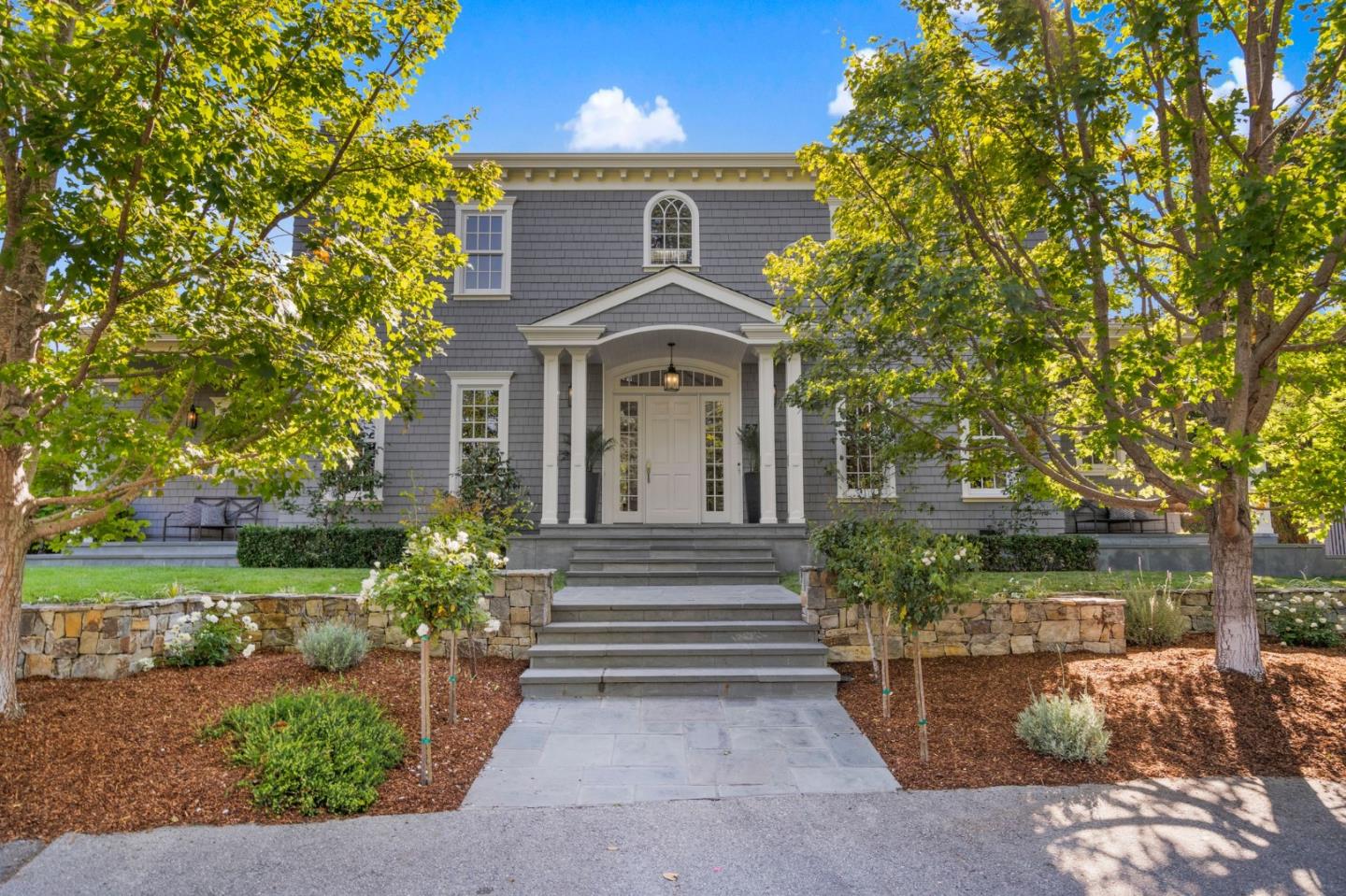 Architecturally gorgeous and gracious, custom built 5 bedroom, 4.5 bath home on 13,600 sf lot in prime west Menlo Park location. Exuding charm and curb appeal, the many fine details include wood-paneled living room with fireplace, large dining room with fireplace and wainscoting, gorgeous kitchen-family room with box-beam ceiling, breakfast nook, large center island, Wolf, Sub-zero and Miele appliances, walk-in pantry, wine cellar, large laundry room, mud room, ground floor main bedroom with ensuite bath and large walk-in closet, four large bedrooms upstairs, custom molding/trim work. Beautifully landscaped backyard featuring pool with spa and built-in bbq. Separate studio perfect for home office or gym. New roof in 2023, newly painted interior and exterior, newly finished hardwood floors, new carpeting in bedrooms, new landscaping. Convenient to award-winning Oak Knoll Elementary and Hillview Middle Schools. Easy access to shops, restaurants, Stanford and commute routes.