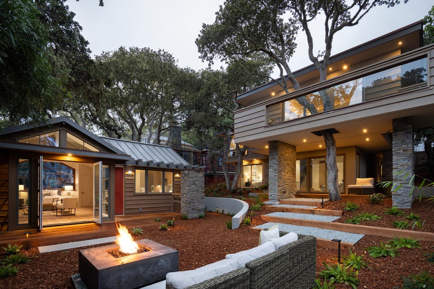 We are pleased to present a new luxury home set in a spacious oak-studded park known as Pine Trees. This residence was thoughtfully designed by renowned Carmel architect Thomas Bateman Hood, with interiors by Vance Killen Design and constructed by Brendan Connolly of Wayfinder Development. The residence enjoys a no-step level entry with the primary bedroom suite, an open gourmet kitchen, and a great room on the main living level. Landscaped gardens, ocean-view decks, fireplace and outdoor kitchen surround a secluded guest house. Built to the highest standards of design detail, sustainability, and energy efficiency, Feels Wright enjoys many amenities and smart home features such as an Energy Recovery Ventilation System. Enjoy a five-minute stroll to the Village shops and restaurants or 10 minutes to the beach.