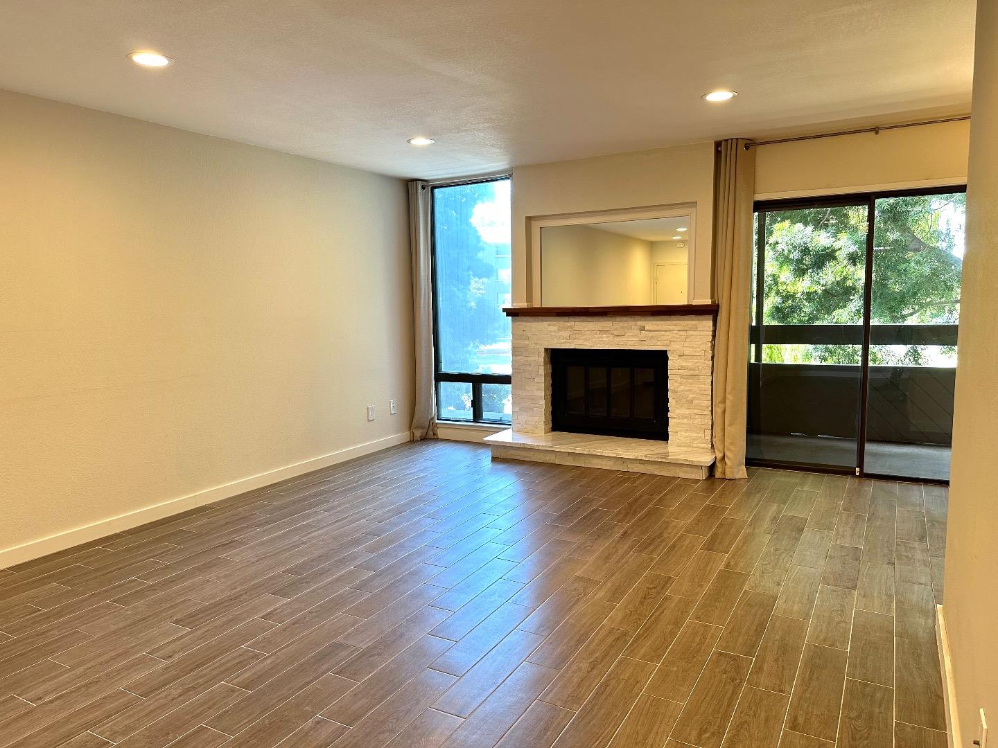 Experience upscale living in this newly renovated 1-bedroom, 1-bathroom condo. Poised against a backdrop of lush greenery, this residence seamlessly merges contemporary sophistication with the beauty of nature. Inside, discover a versatile den/office nook and a gourmet kitchen with opulent quartz countertops and stainless steel appliances. Spa-like bathroom with its own quartz countertops, and in-unit laundry room with a washer and dryer. Wood-look tile flooring graces the entire space, complemented by two private balconies that overlook the greenbelt. Stroll along scenic walking paths amidst the greenbelt and lagoon, cozy up to the fireplace in the living room. The community offers two pools, tennis courts, and a basketball court. This condo grants swift access to major highways, SFO, shopping centers, leading tech companies, dining establishments, public transportation, and recreational options. Top-rated Foster City schools complete this exceptional offering.