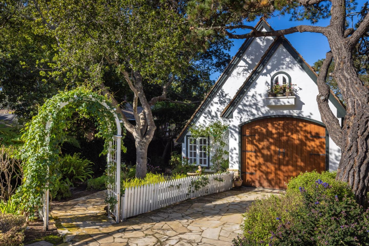 This 2004 Carmel Heritage Award Winning Cottage, a beautiful English Country inspired home was built in 2003, and is only four blocks from the famous Carmel Beach, and 4 blocks from the village of Carmel. The living room features a majestic floor-to-ceiling Carmel Stone fireplace, adding to the relaxing and cozy feeling of the home. The main floor includes 2 guest bedrooms and a bathroom, a living room, a dining room, and a chef's kitchen with a pantry that connects to a laundry room. The living and dining rooms have French doors that open to a beautiful backyard patio and lawn, also seen through custom conservatory windows. Attention to detail is apparent throughout this charming home with custom handcrafted windows, cabinets, and doors with luxurious radiant heated floors. The second-floor primary suite is spacious, with high ceilings, French doors, private patios, a bonus room/bedroom w/closet, and a claw foot tub in the primary bathroom. This is a perfect place to call home.