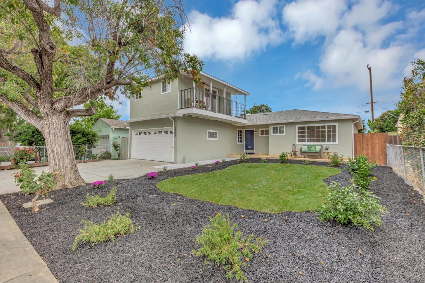 Newly remodeled Santa Clara home! Lots of living space...1623 sf+permitted patio room w/ approx. 320 sf. equals 1943 total sf! Two levels --3 bedrooms, 2 baths, living room, patio room, & kitchen on 1st level & 1 bdrm plus office (can be used as a 5th bedroom), full bath & balcony on 2nd level. Updated kitchen w/an abundance of cherry cabinets, granite counters, gas stovetop, built in oven and microwave, & dishwasher, w/ large eating area. Big, bright living room w/ refaced fireplace & skylight opens to multi-use patio room. Remodeled baths...lower hall bath offers NEW tiled shower over tub, shaker vanity & fixtures; primary bath offers huge shower, new shower door, vanity & fixtures. So much to offer-NEW high quality luxury vinyl flooring, NEW interior doors & hardware, FRESH interior & exterior paint,NEW landscaping, most dual paned windows, tankless water heater,+more! Fabulous location near services & restaurants along El Camino Real and great commute location. Excellent value!