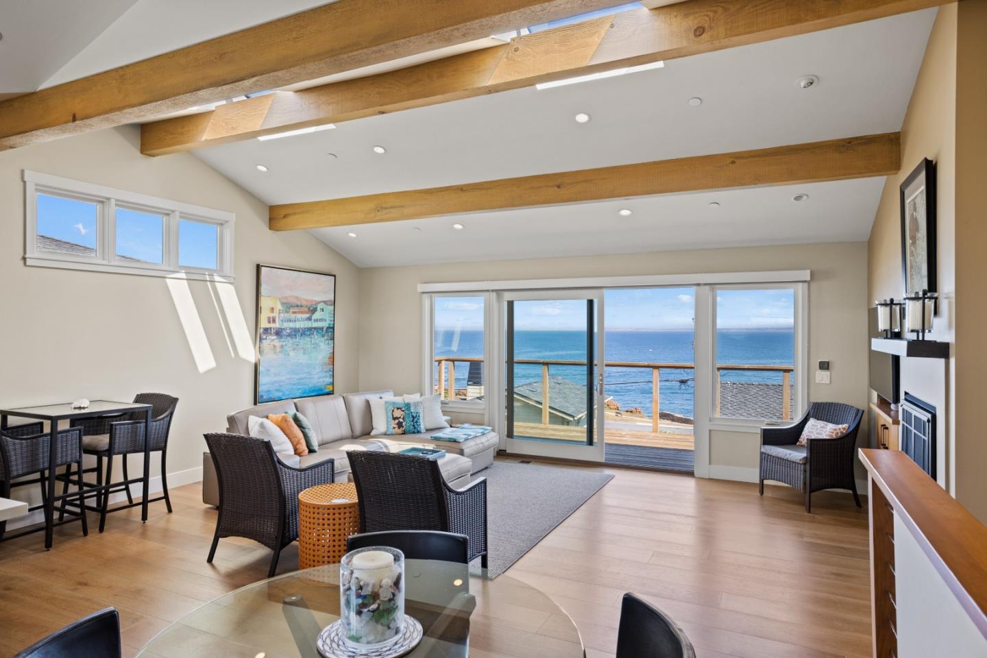 The wonders of Pacific Grove and the Monterey Bay are calling you! 904 Del Monte is a beautiful turn-key property with panoramic white water views. The main level boasts a modern kitchen, large dining area, TV room, two bedrooms with en-suite bathrooms, dedicated laundry area and two car garage with its own bay views. Climb the stairs to the great room and primary bedroom that provide you with the marine life and white water views of your dreams. There is every amenity in this second floor oasis- a killer deck, great room with fabulous kitchenette, primary bedroom with full bathroom, walk-in closet, window seat and bonus half bathroom for your guests. Don't miss out on your opportunity to own a priceless piece of the bay!