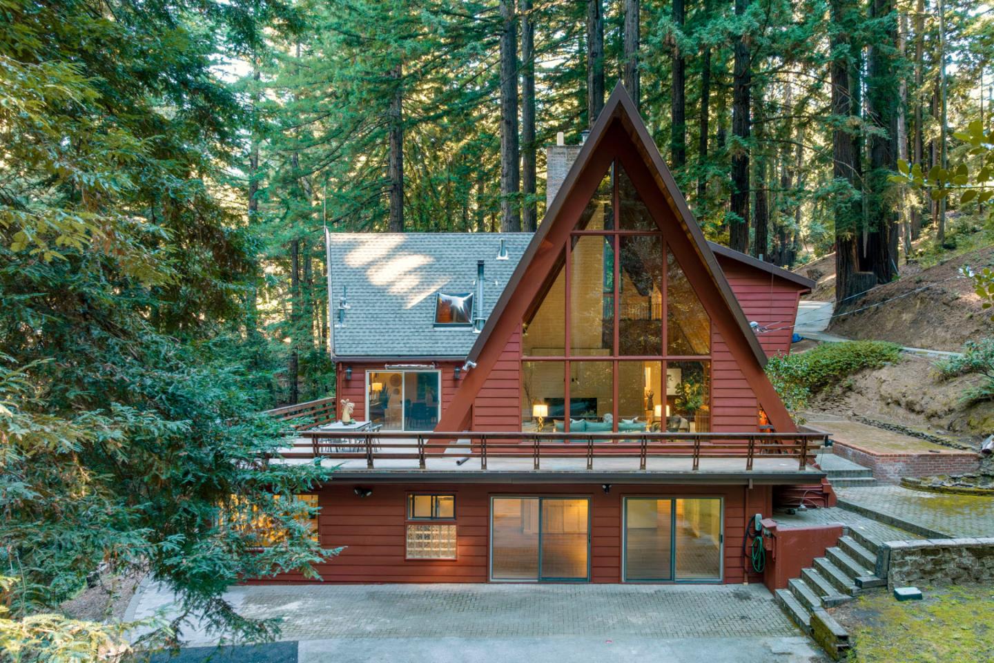Welcome to the Redwood Chalet! This stunning 3330 sq ft country home has 5 bedrooms and 3.5 bathrooms - nestled in a redwood forest on 6+ acres - is completely private and still only 5 miles from 280. The spacious living room with its cathedral ceilings and a wall of windows invites an abundance of natural light, creating a warm and peaceful atmosphere. Open the sliding doors and step out onto the deck, where you can enjoy alfresco dining or simply relax, taking in the tranquil surroundings. On the other side of the deck is the remodeled kitchen - granite countertops and stainless appliances - a true chefs delight. The primary en-suite bedroom, is located on the lower level along with 3 more bedrooms with sliding glass doors to the outdoor patios, and 1 full bath. Laundry and a wine cellar. The en-suite guest quarters are located on the top floor. EV charger and fiber optic internet. Detached 2+ bay garage features a huge extra multi purpose room on the second story room. PV Schools.