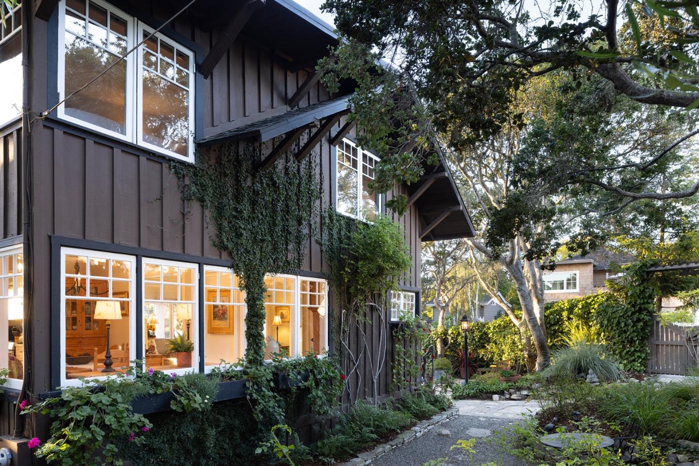 Located in the heart of Carmel-by-the-Sea, Solbakken has been loved and enjoyed by the same family for decades and maintains much of its original 1930s charm and character. Enjoying a prized location and oversized 6000SF lot, just a 1/2 block to l'Auberge Carmel and a block to the Cypress Inn, and 4 blocks to the beach, this is a rare opportunity. The main house, with 3 bedrooms and 2 full and 1 half bathroom, enjoys ocean and Point Lobos views from the spacious entertaining deck, the kitchen and primary bedroom. The separate and charming guest house has its own kitchen full bath and cozy fireplace. The lush gardens offer cozy sitting areas meandering paths and loads of privacy. A sought-after amenity in Carmel is the 2-car garage with additional off street parking. From the large gathering deck watch the waves crashing at Point Lobos and the sun waning into the horizon. This timeless home presents an amazing opportunity for Carmel living at its finest.