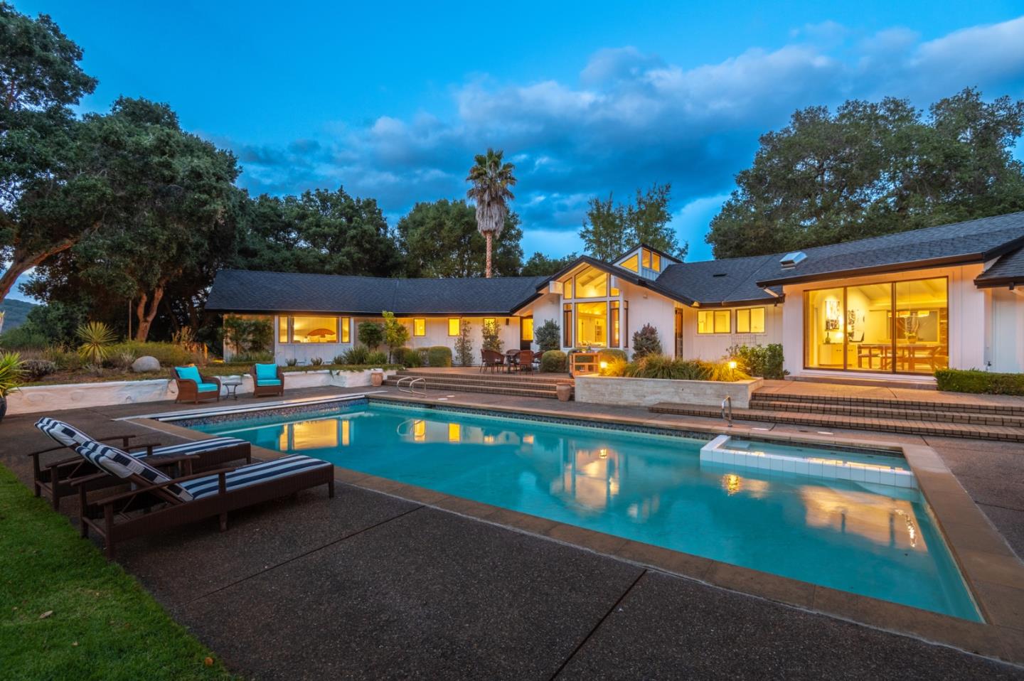 Welcome to your retreat in Sleepy Hollow, an exclusive gated neighborhood a few minutes from Carmel Valley Village. This sprawling single-level California ranch home on a private 6+ acre estate offers luxury and tranquility. The three bedrooms, two bathrooms, plus an office estate includes a spacious primary suite with a walk-in closet and picturesque views. Enjoy the warmth of wood-burning fireplaces, open beam ceilings, and hardwood floors in both the main living room and family room. Step through a large sliding door to the patio overlooking the pool, cabana, and extensive lawn, embodying the essence of California living. The property includes a one-bedroom guest house (650 Sq Ft,) with attached media studio (700 Sq Ft), catering to creative pursuits. Surrounded by oak trees and bathed in sunlight, the entrance through a private gate ensures a peaceful sanctuary while offering breathtaking views in every direction. Seize the chance to own this unique Carmel Valley estate!