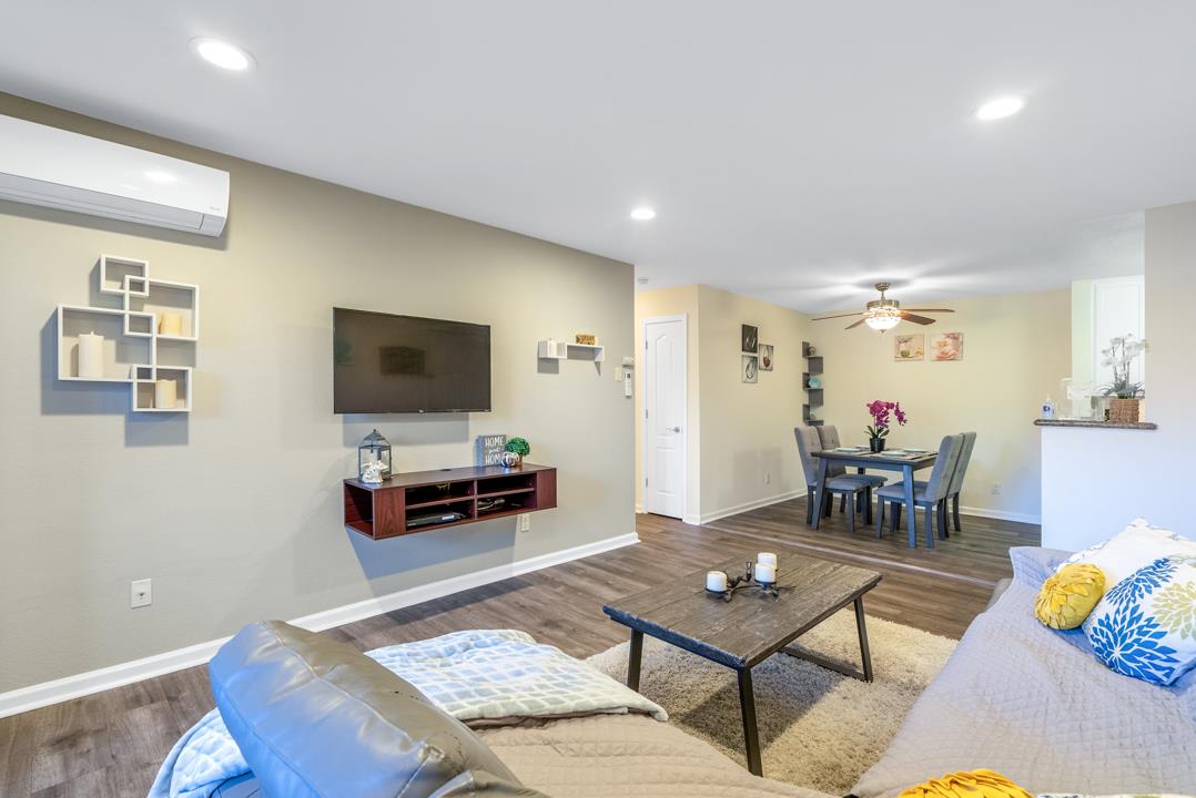 This updated 2-bed, 2 full bath condo in central San Jose epitomizes modern living. Unlike others, this unit boasts a minisplit AC system for year-round comfort. The vinyl plank flooring and recessed lighting offer style and convenience, while the in-unit laundry simplifies daily chores. The prime location provides easy freeway access, proximity to Santana Row for shopping and dining, and convenience to San Jose City College and Santa Clara Valley Medical Center. Secure your spot in this vibrant community and enjoy all that San Jose has to offer.