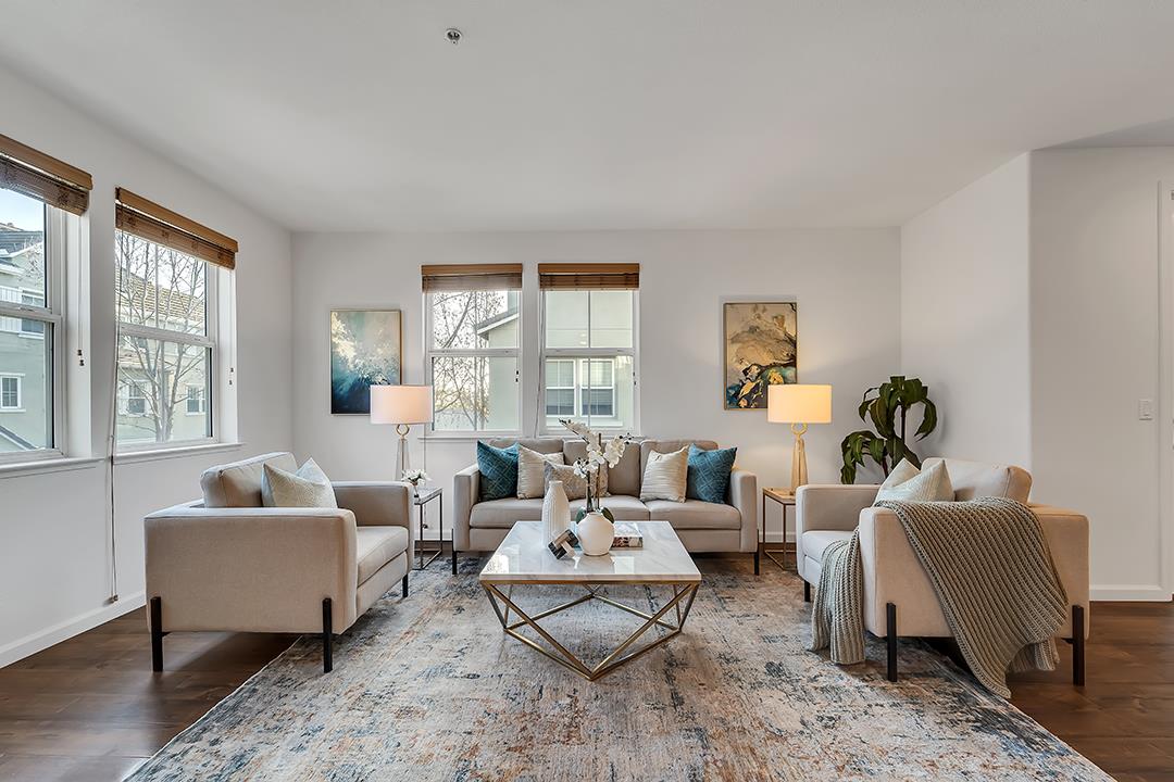 Modern and sleek townhouse located in a quiet and desirable neighborhood. It is a beautiful 3 bedrooms and 2.5 bathrooms home. It is located in the highly sought-out Berryessa Area. The first floor offers an open concept which includes a half bathroom and a laundry room right next to kitchen. On the other side, enjoy the openness of the kitchen with a pantry, a breakfast bar, fresh Corian countertops and tiled flooring in the kitchen. The living and dining area have engineered hardwood floors, while all other areas are carpeted. On warm days, enjoy reading, having a nice meal or cup of tea sitting on the open patio. On the second floor, enjoy the primary master bedroom with a walk in closet along with second and third bedrooms and with a shared full bathroom. Home office and wall bed added to 3rd bedroom. Private parking in an attached 2-car tandem garage with room for storage. This home is located near Berryessa Bart Station, and is walking distance to Light Rail Station, Penitencia Creek and Commodore park and a highly recommended Summer Dale Elementary. It is also conveniently located near restaurants, major grocery and retails stores. Easy commute to high tech firms like Amazon, Google, Apple's and SJSU campus. Don't miss out on this beautiful, well maintained home.