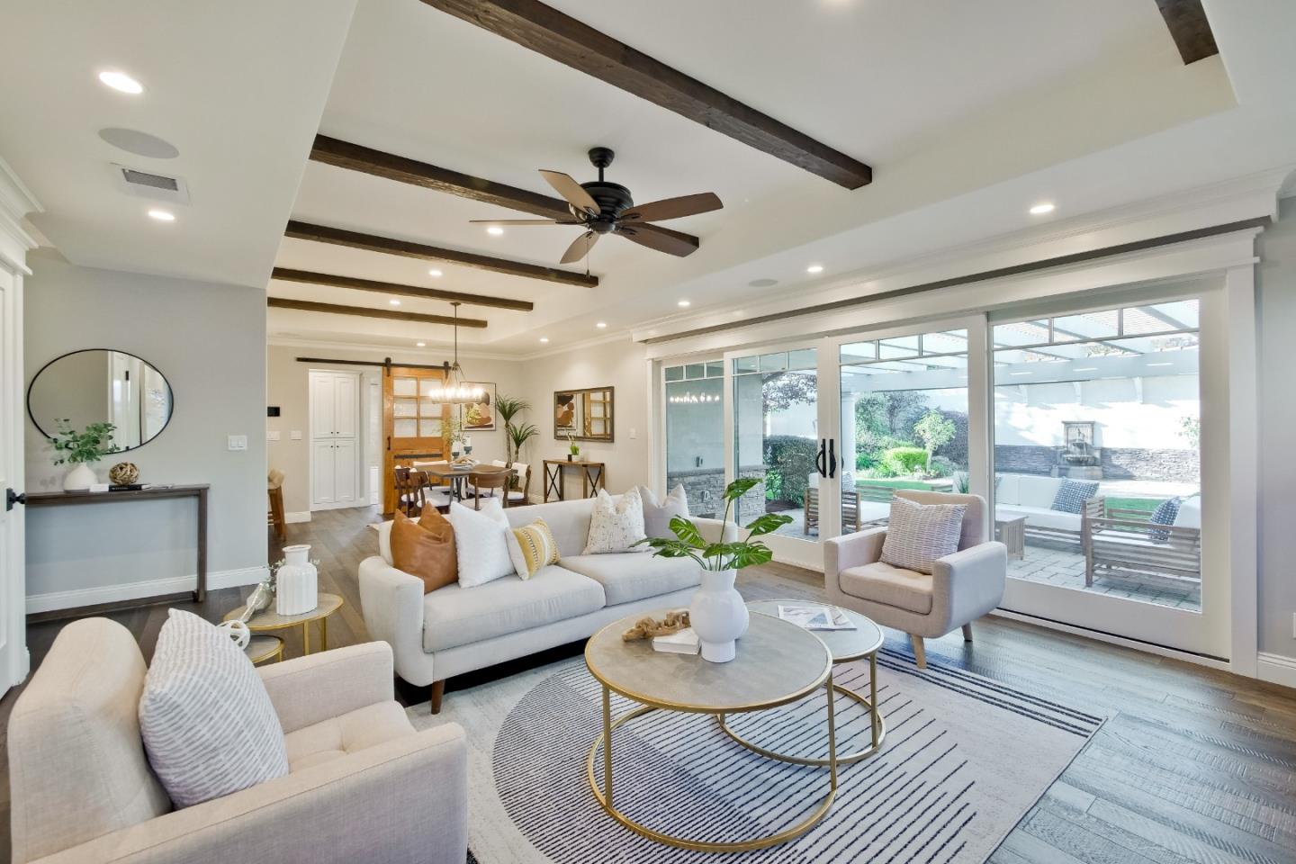 This stunning, updated, custom home, has an open floor plan that lives like a much larger property. Thoughtfully designed to make the most of every space, both indoors and out. This smart home has been thoroughly remodeled down to the studs. High end materials and quality craftsmanship set this home apart, this is not a flip and truly reflects pride of ownership. The open-concept living room with hewn accent beams connects to the sprawling patio and yard through an expansive 16' glass door. Custom cabinets, engineered hardwood floors, all-new wiring, copper plumbing, smart LED lighting, integrated speakers, vaulted wood ceiling, automated window shades, heated bathroom floor, curbless shower, and owned PV solar are just some of the features you will find. This exceptional one-of-a-kind property was built to live better. Professionally landscaped yard with custom arbors, accent lighting, paver patios, and hot tub make for an excellent place to relax and entertain. Great location, great floor plan, and great schools add to the appeal, come see for yourself!