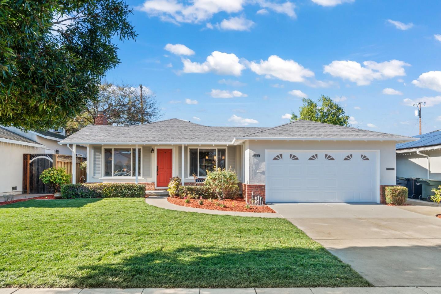 Lovely Single-Story Home Nestled in Sought-After Sunnyvale Cumberland Neighborhood; 3 Bed, 2 Bath; 1,213+/-SF; Fresh Exterior & Interior Paint; Cherry Hardwood Floor & Recessed Light; Inviting Front Porch; Open Living/Dining Area with Fireplace, Built-in Speakers & Ceiling Fan; Open Kitchen with Island, Breakfast Bar, Wine Rack, Pendant Lights, Plenty of Cabinets, Dacor 5-Burner Gas Cooktop, Hood, Granite Countertop & Backsplash, Bosch Dishwasher, Oven & Side Door Access to Backyard Patio; Primary Suite & 2nd Bedroom with Closet Organizers; Remodels Done with Permit; Central A/C; Ring Doorbell & Security Light; Attached 2-Car Garage with Laundry, Sink, Storage Closet, Cabinets & Attic Storage Space; Awning for All Bedroom Windows; Good Size Backyard with Lawn & Fruit Trees; Convenient Location at Border with Mountain View, Near Sunnyvale Downtown, Parks, Library & Supermarket; Easy Access to Highway 85/237, El Camino Real, Caltrain Station & Jobs; Excellent Schools: Cumberland Elementary, Sunnyvale Middle & Homestead High