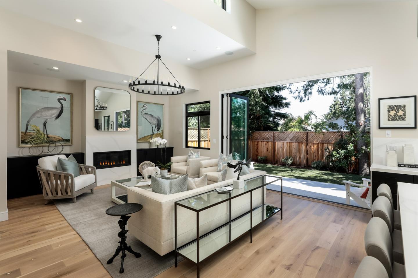 This sleek new build merges contemporary drama with modern comfort and convenience. The entry gallery opens to light-filled interiors with towering ceilings, skylights, and clerestory windows, creating a breezy, indoor-outdoor retreat at the heart of Los Altos. Gathering areas with an inset fireplace offer a folding Centor® glass wall connecting to the patio for versatile living and entertaining. The expansive waterfall island anchors a chefs kitchen fitted with Viatera® Calacatta Sol quartz countertops, custom cabinetry, and Thermador® smart appliances. Each level offers a laundry center and luxurious primary suite, and the lower level displays a flexible family room. Enjoy European white oak floors, surround sound, Da Vinci Marble® and heated floors for bathrooms, and smart features throughout. This home is nestled along an impasse street lined with recent builds, showcasing the high desirability of this setting.