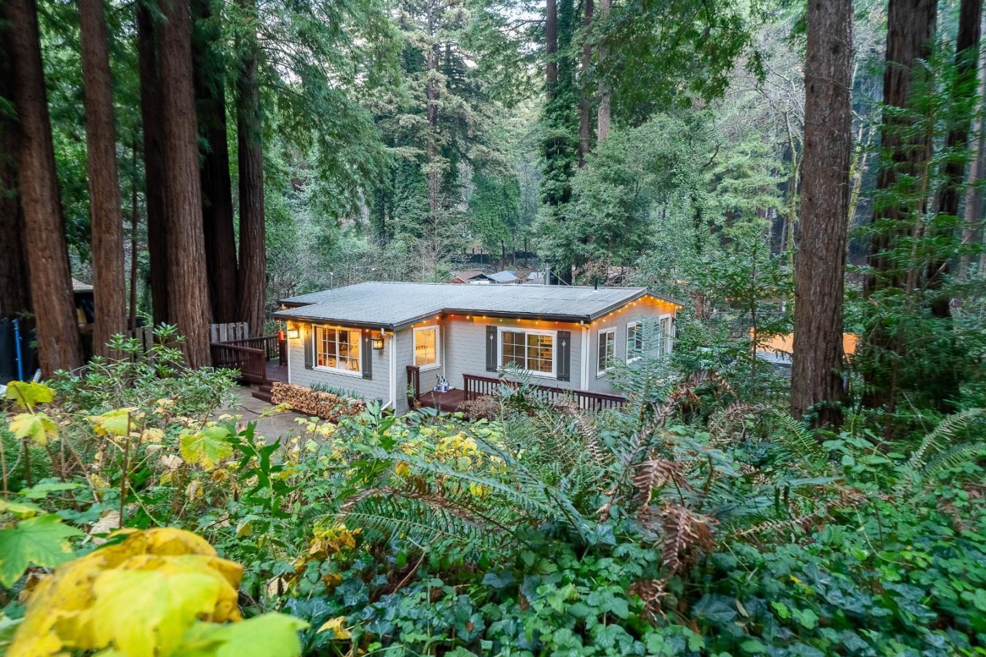 Indulge in the serenity of this beautifully renovated 3bed/2bath riverside home in the forest. Turnkey with freshly stained decks a kitchen with soapstone countertops, modern appliances, a pantry, and wide plank white oak flooring. The open concept floorplan seamlessly connects the kitchen, family room, dining area, and breakfast nook. Vaulted ceilings and recessed lighting create an airy atmosphere. Enjoy tranquil natural views through the double-pane windows. The master bedroom opens up to a wraparound deck where you can relax to the soothing sounds of the river. The spa-like master bath features a clawfoot tub, polished nickel fixtures, soapstone tile, and a marble double sink vanity. Stay productive with high-speed internet, public electricity, and a backup Generac generator for remote work. Discover the movie room below complete with laundry hookups, or great for repurposing for a charming art studio/office. The property includes a refurbished detached garage, paved driveway / 5 parking spots, on two parcels totaling approximately 1/4-acre lot. A $50/year HOA fee grants access to a picnic area with a swimming hole. Just 10 minutes from charming downtown Boulder Creek, 45 minutes to Santa Cruz or Silicon Valley, and only a 5-minute walk to the bus stop at Fern/Hwy 9.