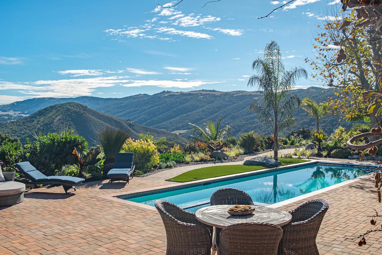 Carmel Valley Hacienda Estate with views of Steinbecks Pastures of Heaven. The view from the living room, bedroom & pool deck is The Pastures of Heaven view which Steinbeck wrote about in East of Eden & Of Mice & Men. The private unchanging & spectacular view is as if it was nearly 90 years ago. This country estate is both private & pristine. You will be surrounded by a generous livable home (5BR & 4.5BA) on a single level & a separate 1 BR 1 Bath guest quarters. The obvious pride of ownership is apparent in every detail. With the guest quarters, there is over 5300 sq ft of living space, offering welcoming space for family & friends. This home has it all. A solar panel array with Tesla Powerwall & a personal hiking trail are on this 10 acre property. A pool with solar heating, gardens, orchard, gated, & fenced. Additional buildings include a large barn, generous storage bldg & writers retreat. You will find yourself surrounded by lush gardens. You'll never want to leave. Additional possibilities for an equestrian or auto enthusiast. For the equestrian you'll find a barn with stalls, metal fencing in paddock area as well as covered shelter. For the car enthusiast, garages with high ceiling & doorway which may accommodate additional lift storage - extra room & workshop areas.